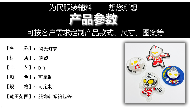 공장 직접 수하물 의류 신발 및 모자 섬유 액세서리 액세서리 어린이 플라스틱 드롭 부드러운 고무 플래시 램프 쉘 로고