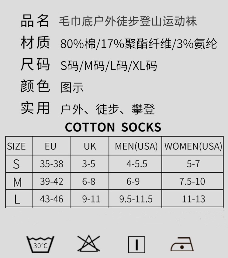두꺼운 타월 양말, 작은 귀 모양의 실이 있는 야외 등산용 땀 흡수 테리 양말, 보트 양말, 하이킹 스포츠 양말 도매스토어 가기