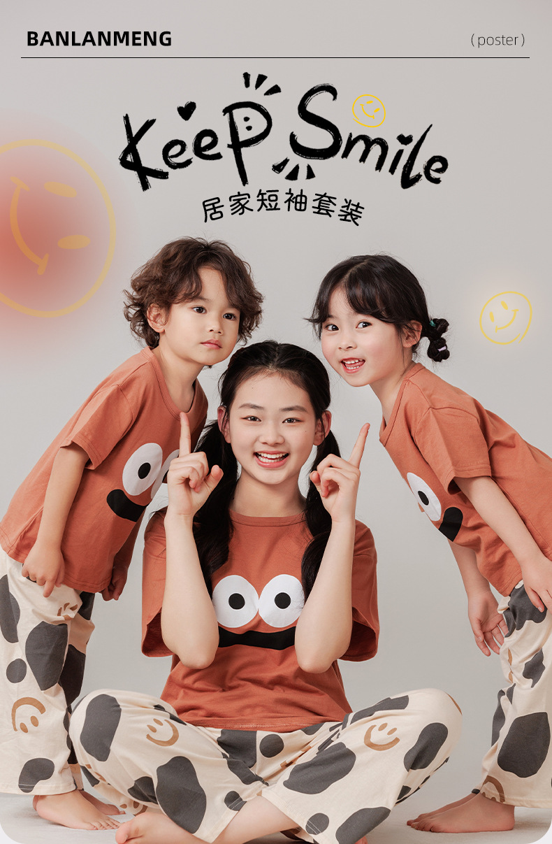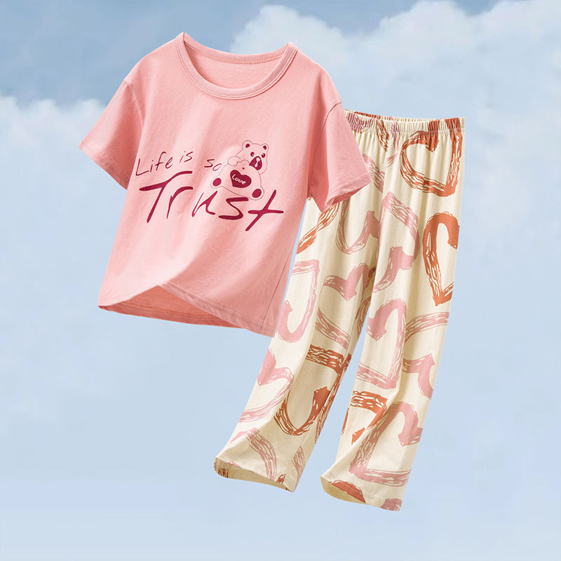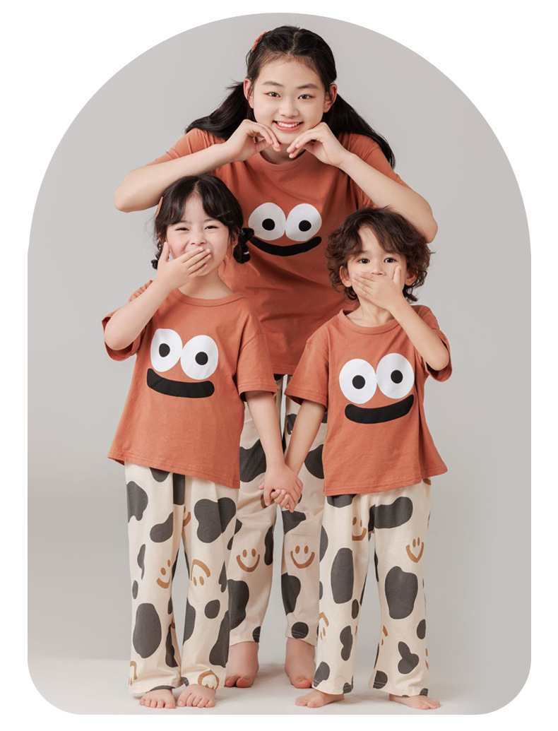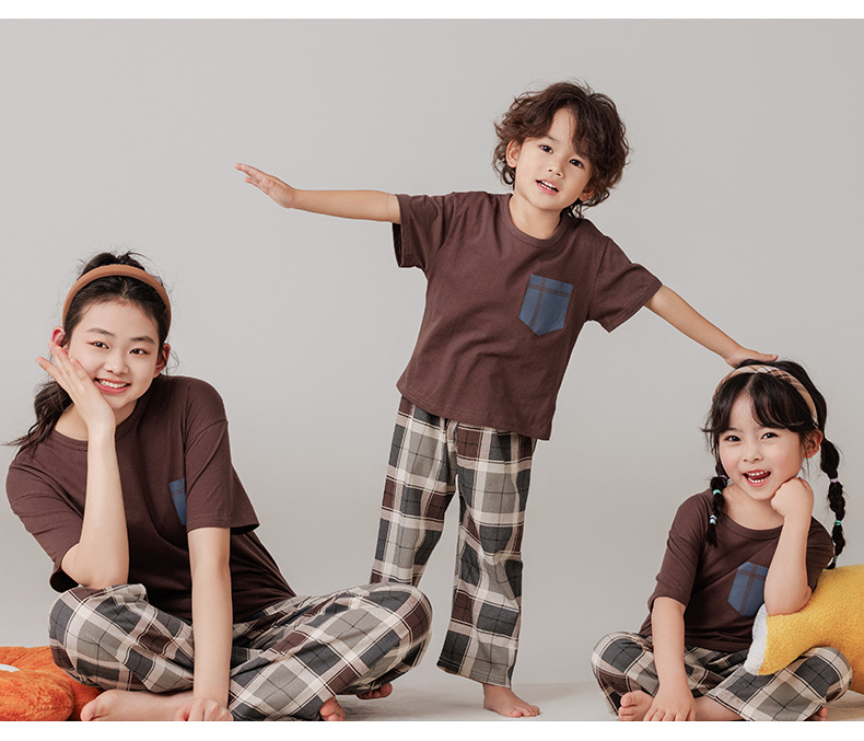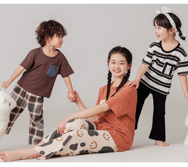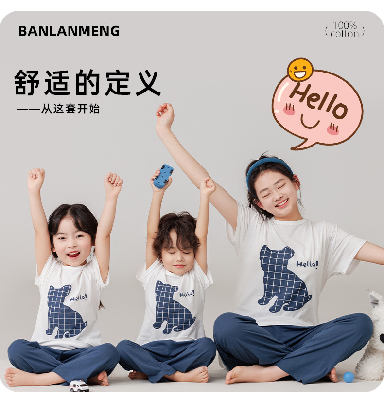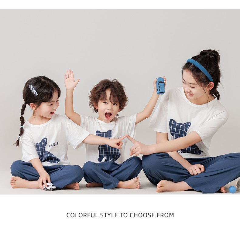 어린이 면화 잠옷 여름 새 소년 반팔 바지 홈 의류 세트 소녀 부모-자식 캐주얼 에어컨 세트스토어 가기