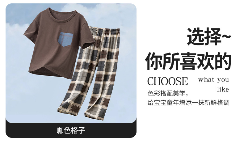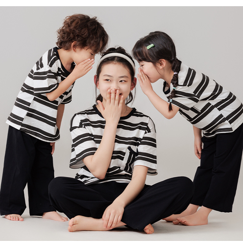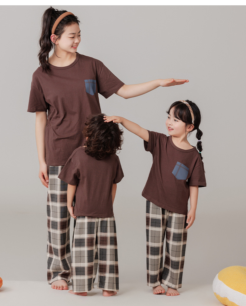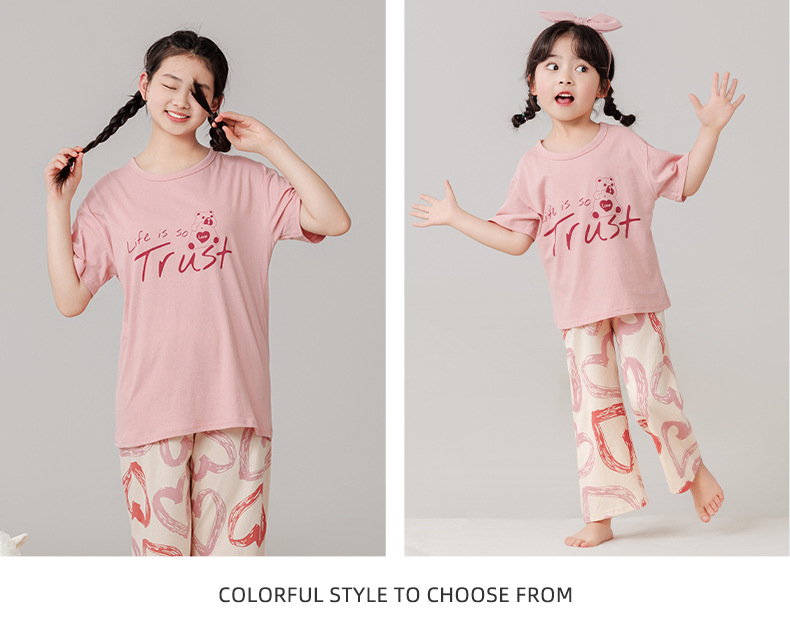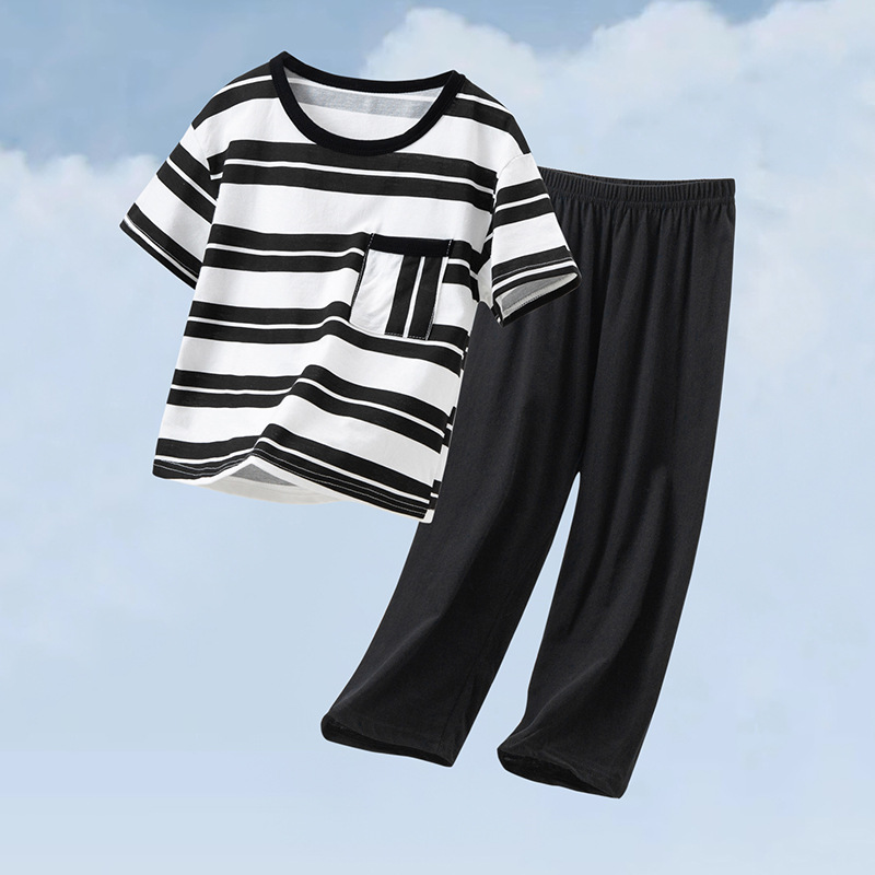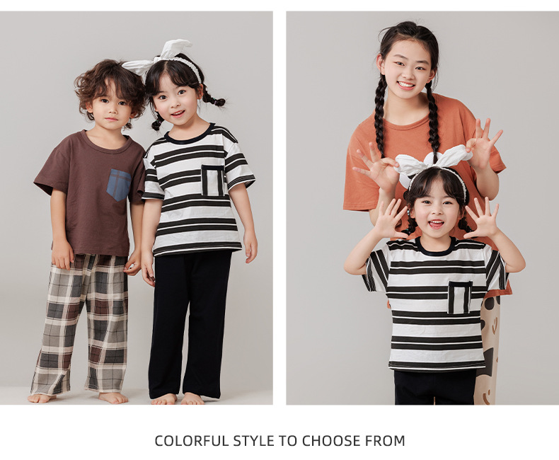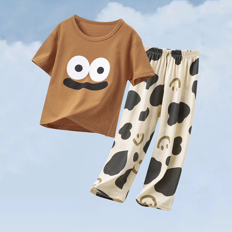 어린이 면화 잠옷 여름 새 소년 반팔 바지 홈 의류 세트 소녀 부모-자식 캐주얼 에어컨 세트스토어 가기