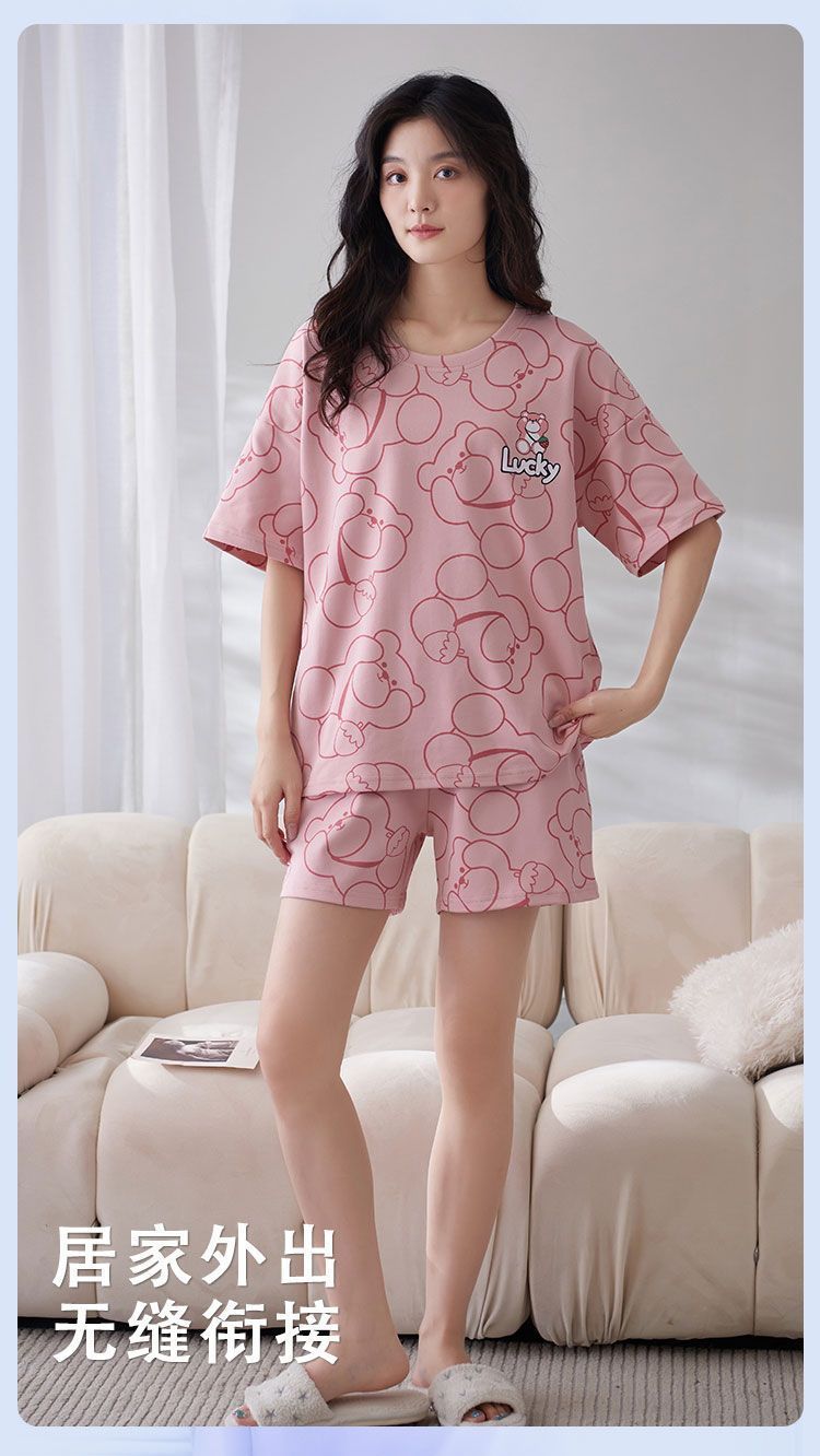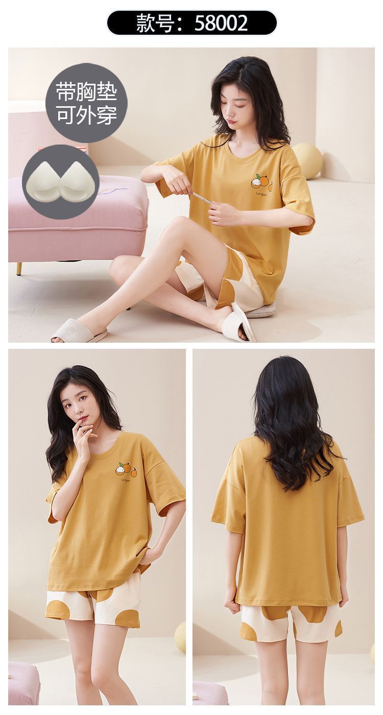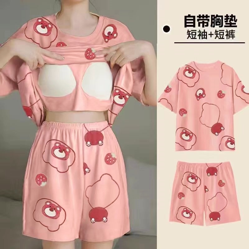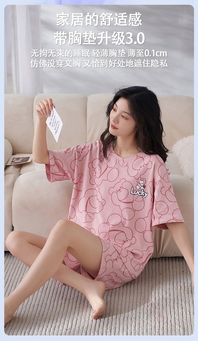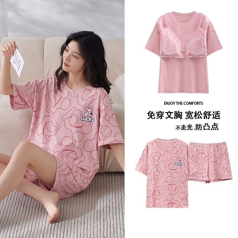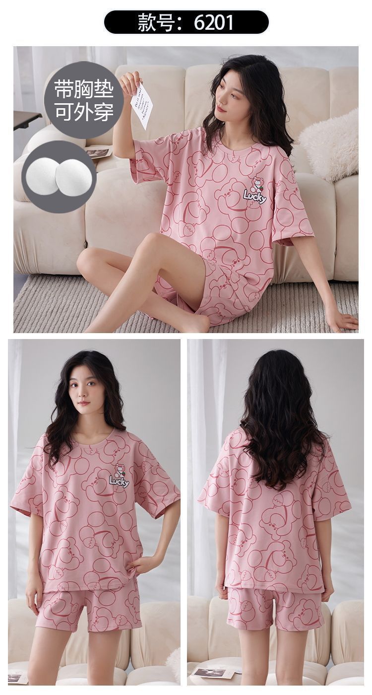 국경 간 파자마 여성의 봄과 여름 브래킷 패드 통합 홈 의류 얇은 반팔 반바지 학생들은 외부에서 큰 사이즈를 입을 수 있습니다스토어 가기
