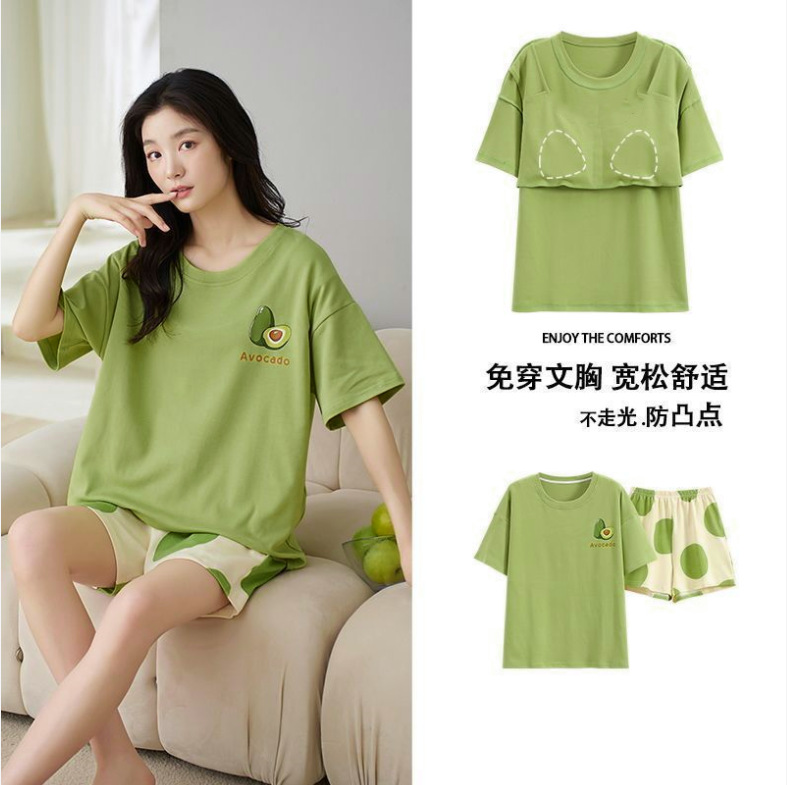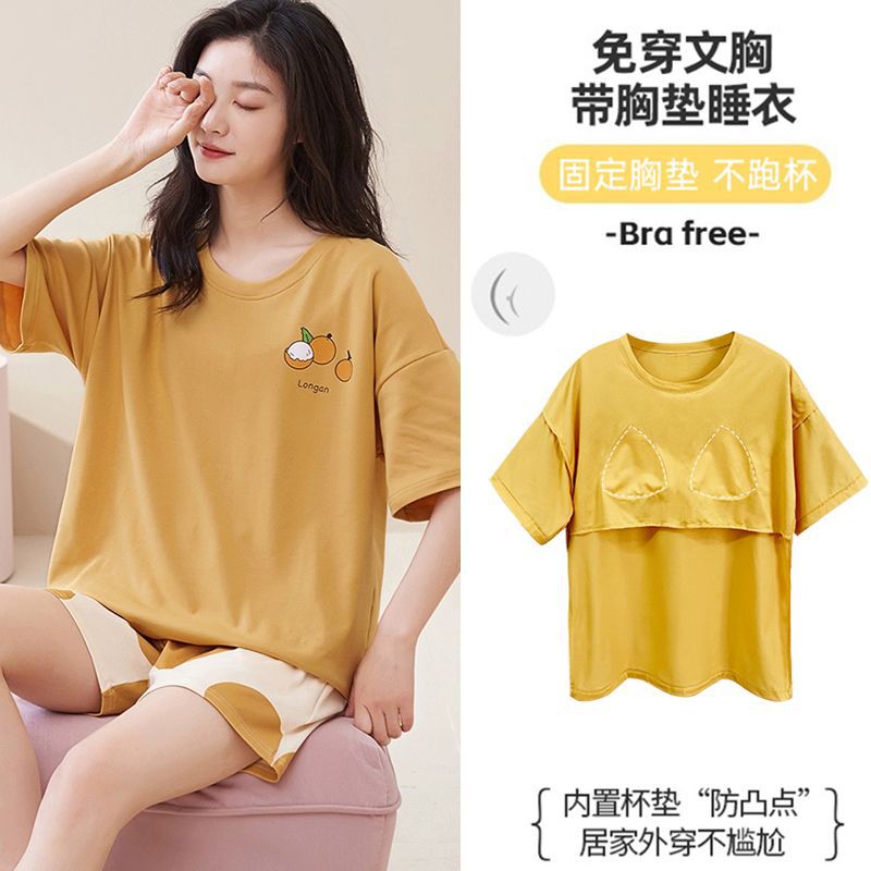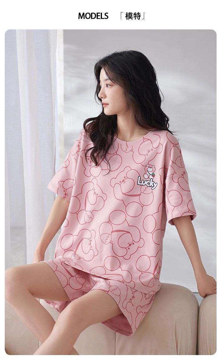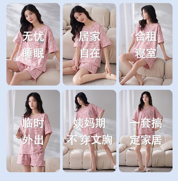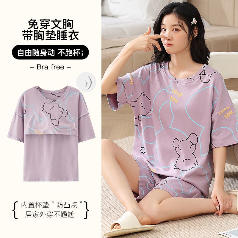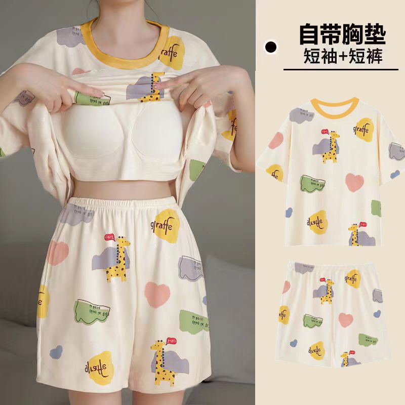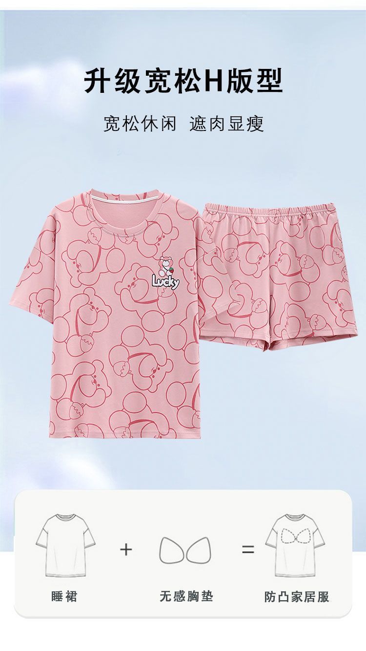 국경 간 파자마 여성의 봄과 여름 브래킷 패드 통합 홈 의류 얇은 반팔 반바지 학생들은 외부에서 큰 사이즈를 입을 수 있습니다스토어 가기