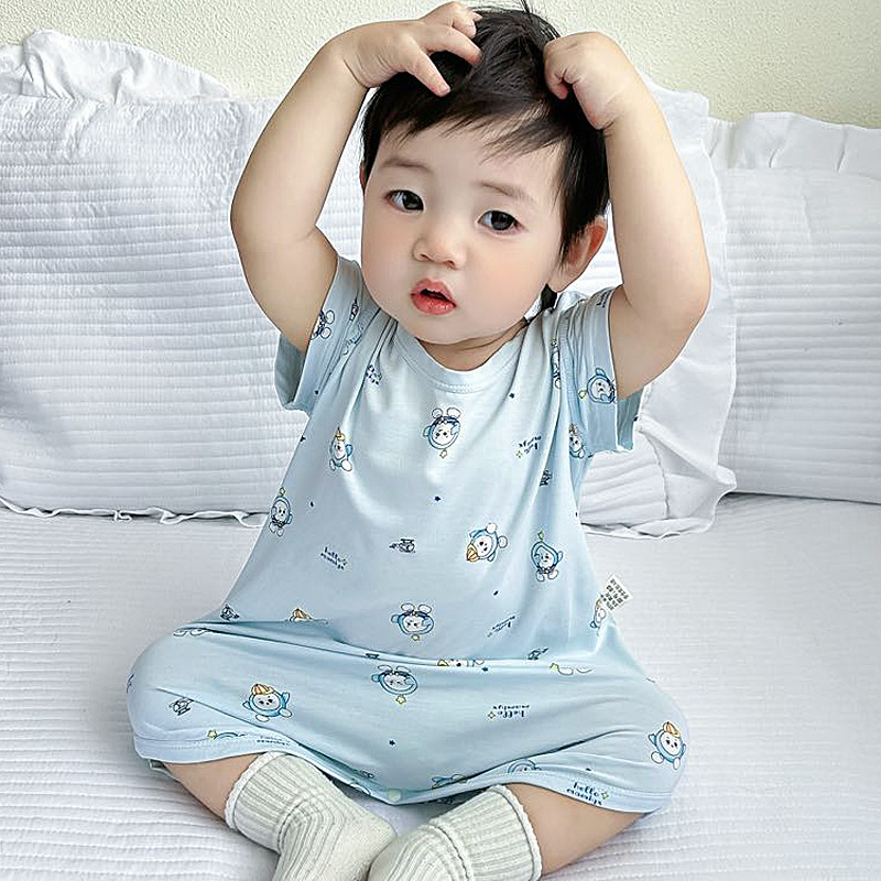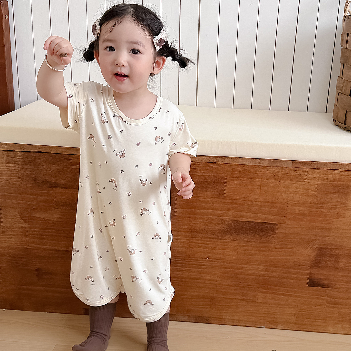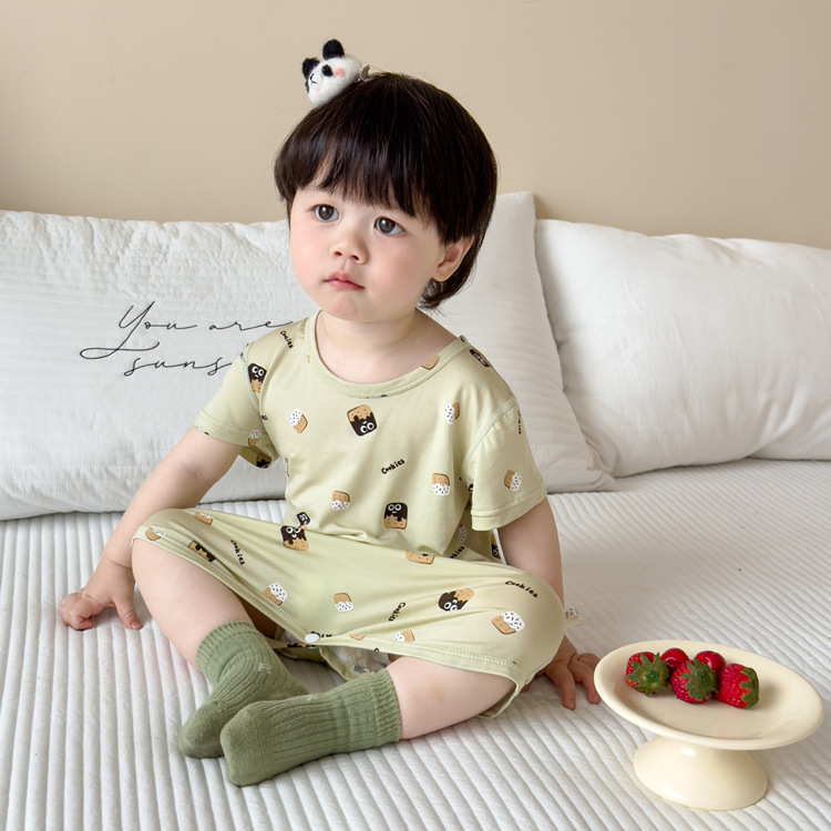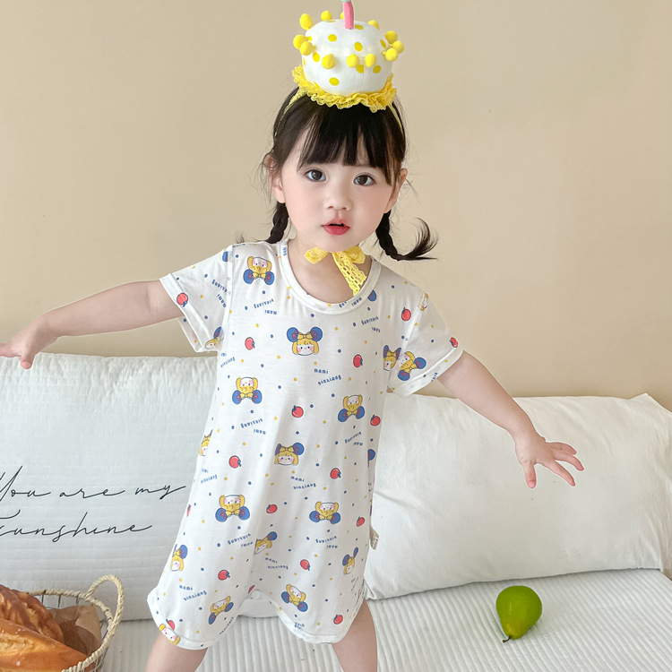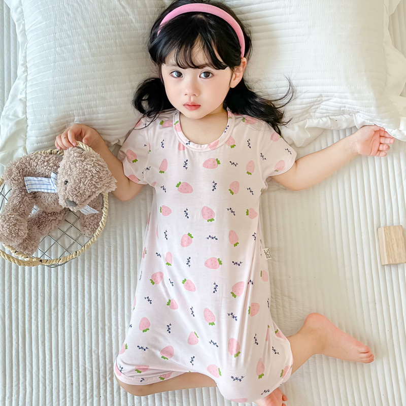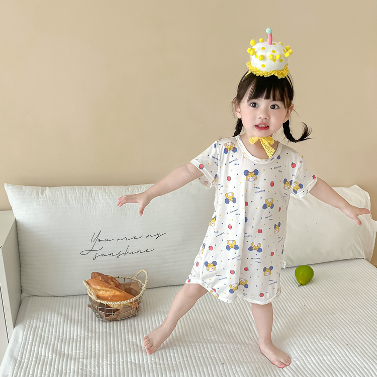 여름 어린이 잠옷 Lyocell 호흡 통기성 소년 나이트가운 소녀 나이트가운 얇은 아기 홈 옷스토어 가기