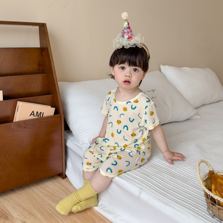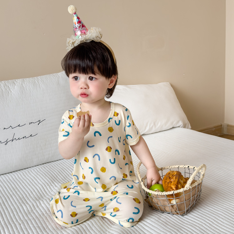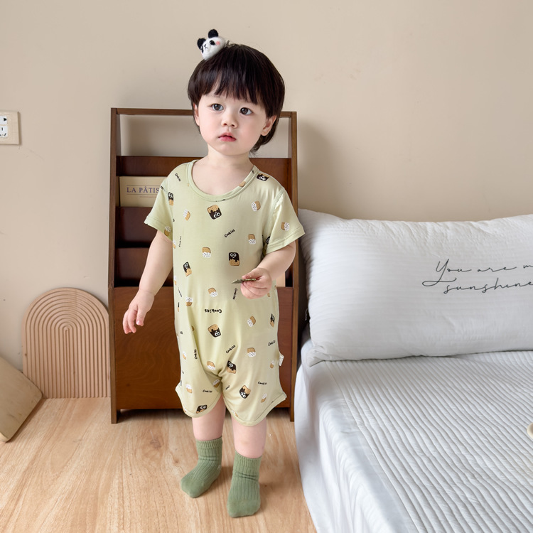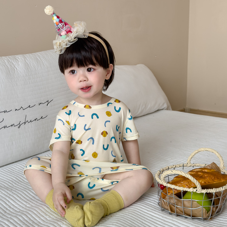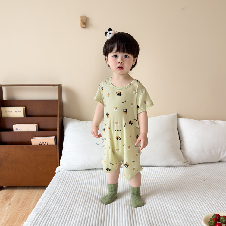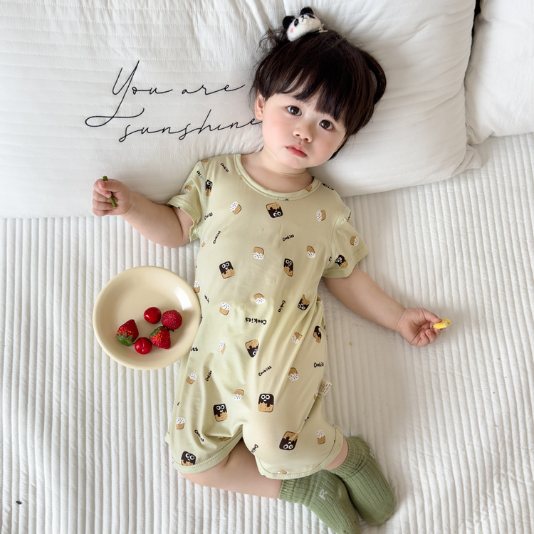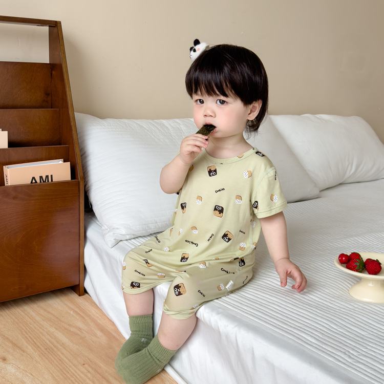 여름 어린이 잠옷 Lyocell 호흡 통기성 소년 나이트가운 소녀 나이트가운 얇은 아기 홈 옷스토어 가기