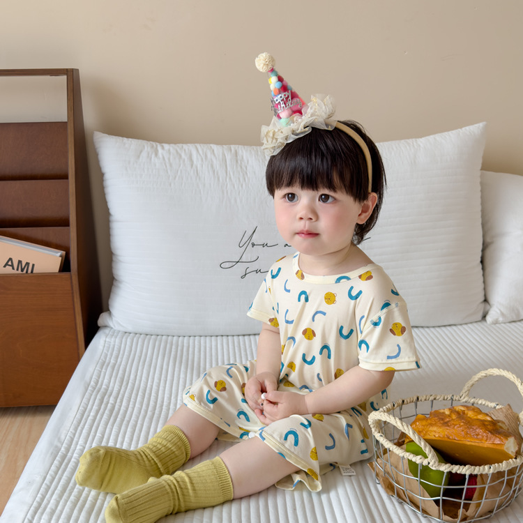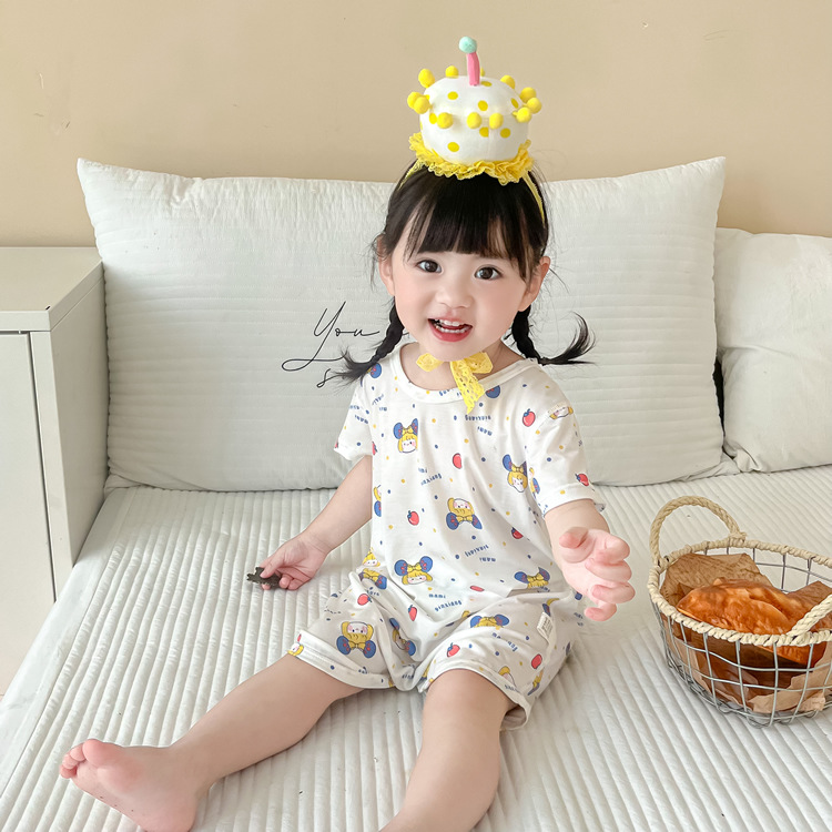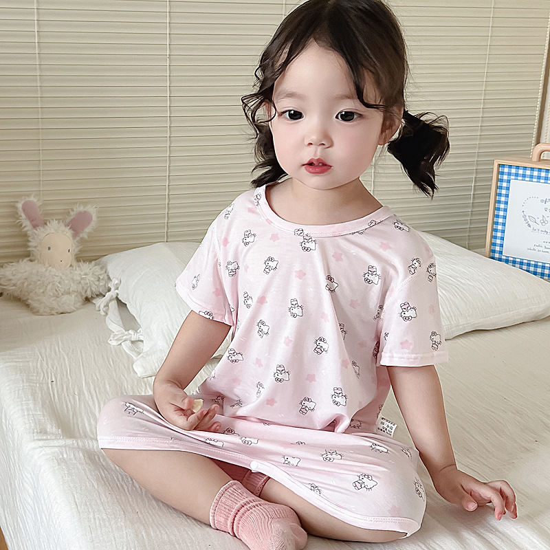 여름 어린이 잠옷 Lyocell 호흡 통기성 소년 나이트가운 소녀 나이트가운 얇은 아기 홈 옷