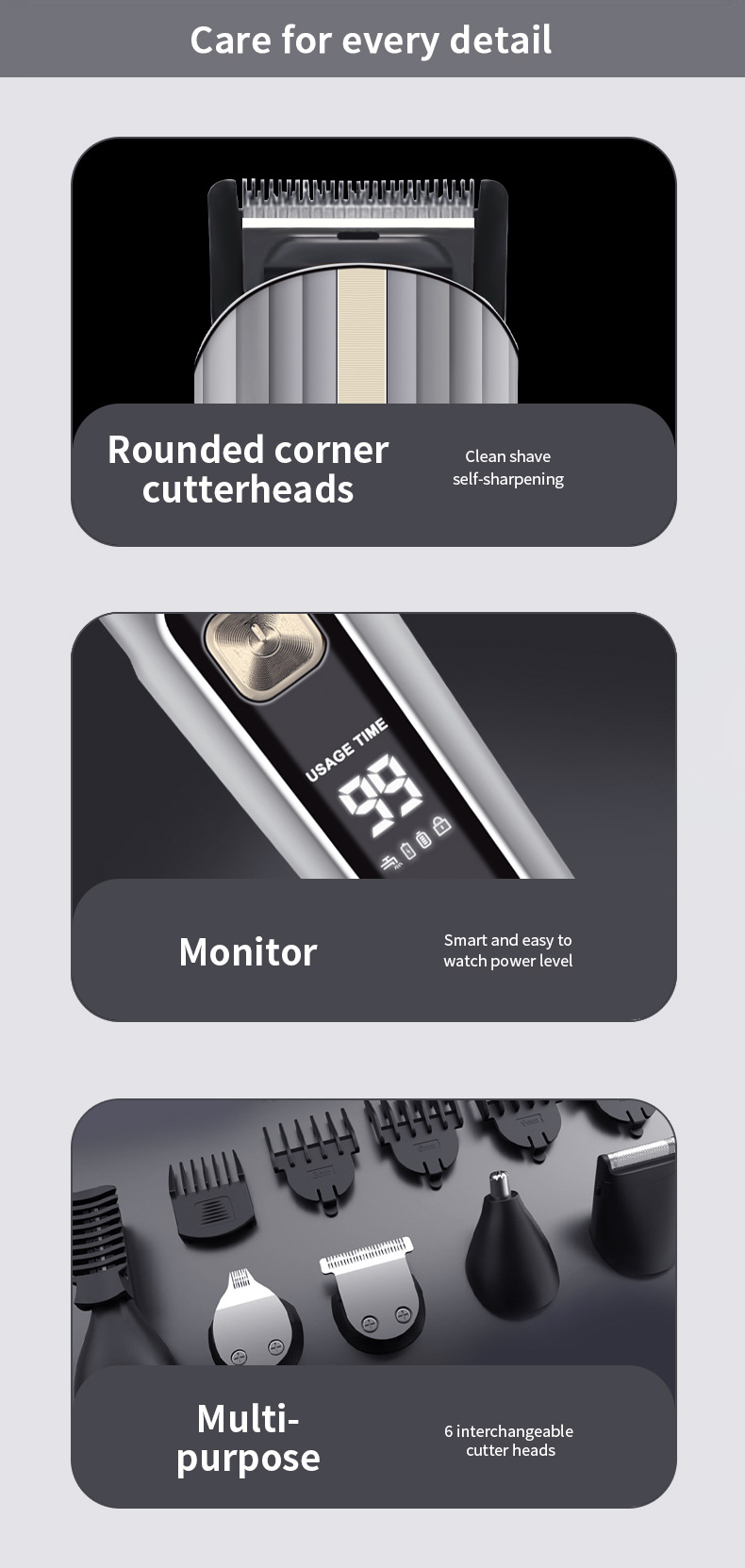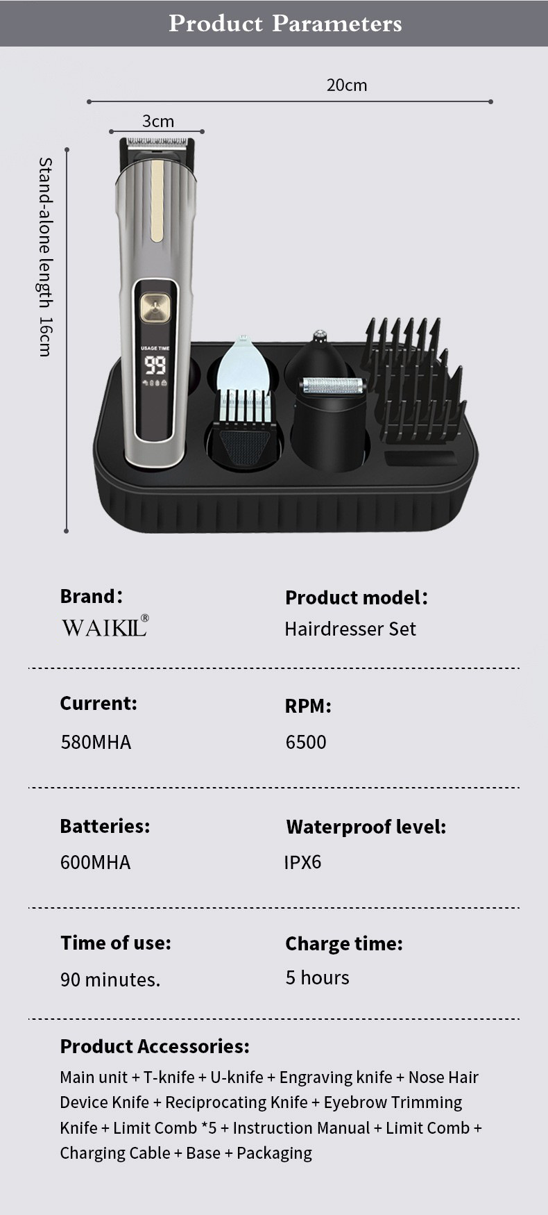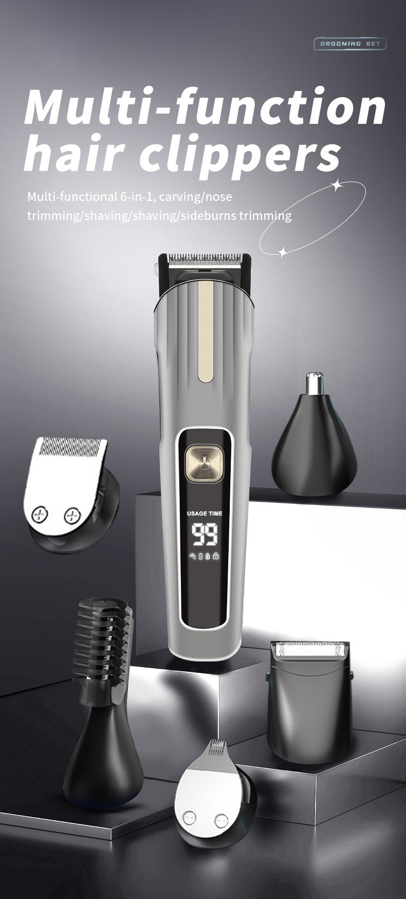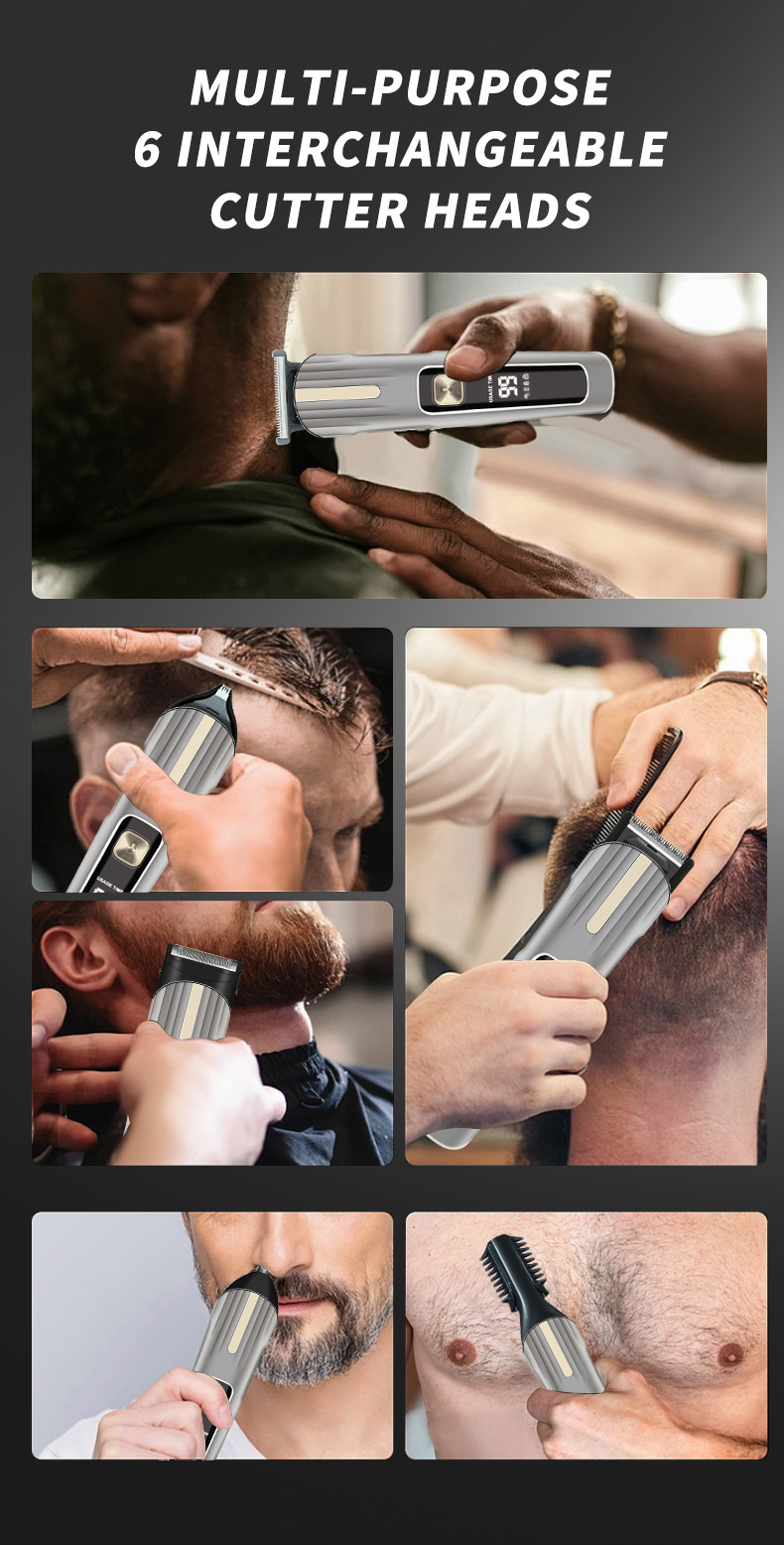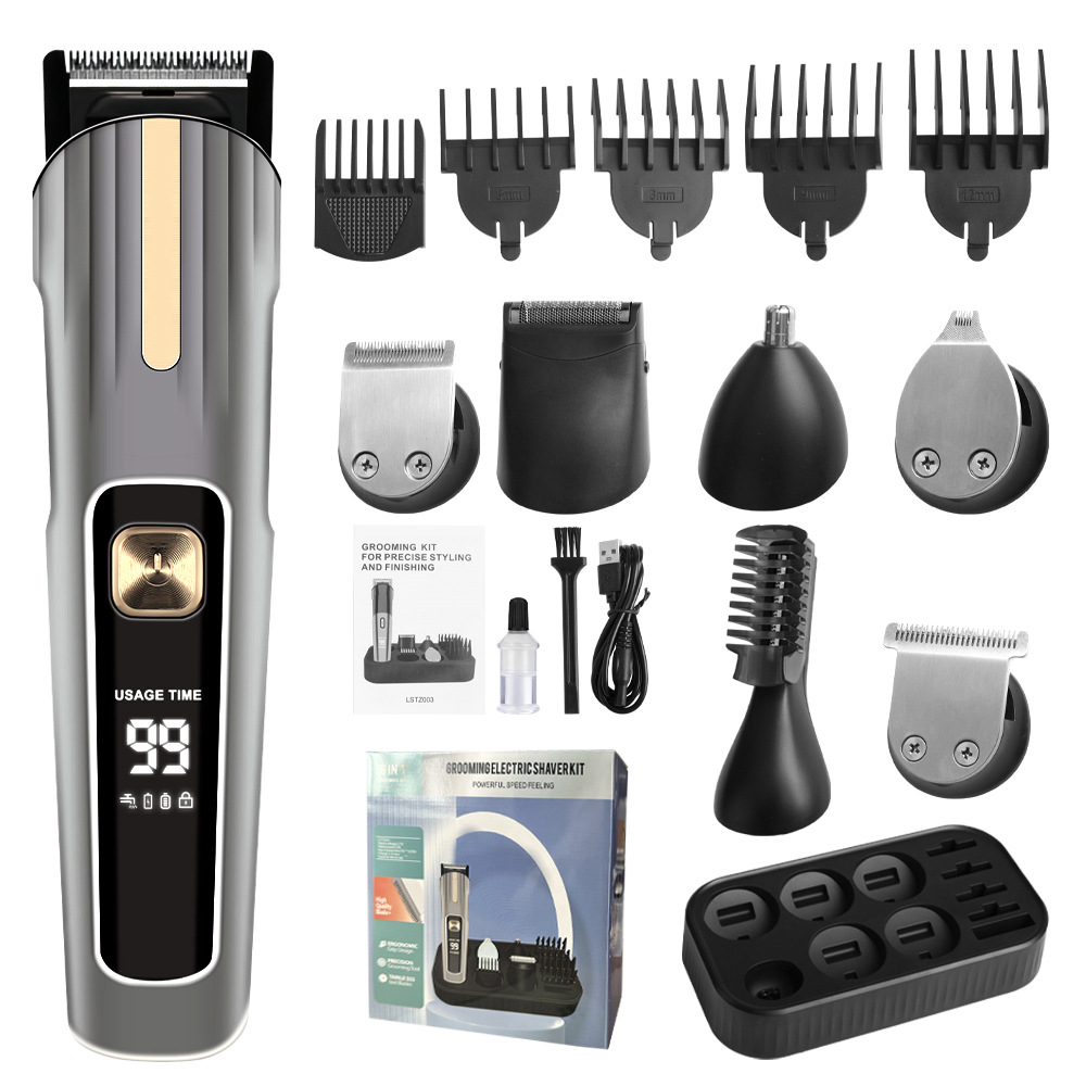 국경 간 전기 헤어 클리퍼 세트 5 대 1 디지털 디스플레이 세척 전기 클리퍼 USB 충전 전문 오일 헤어 클리퍼