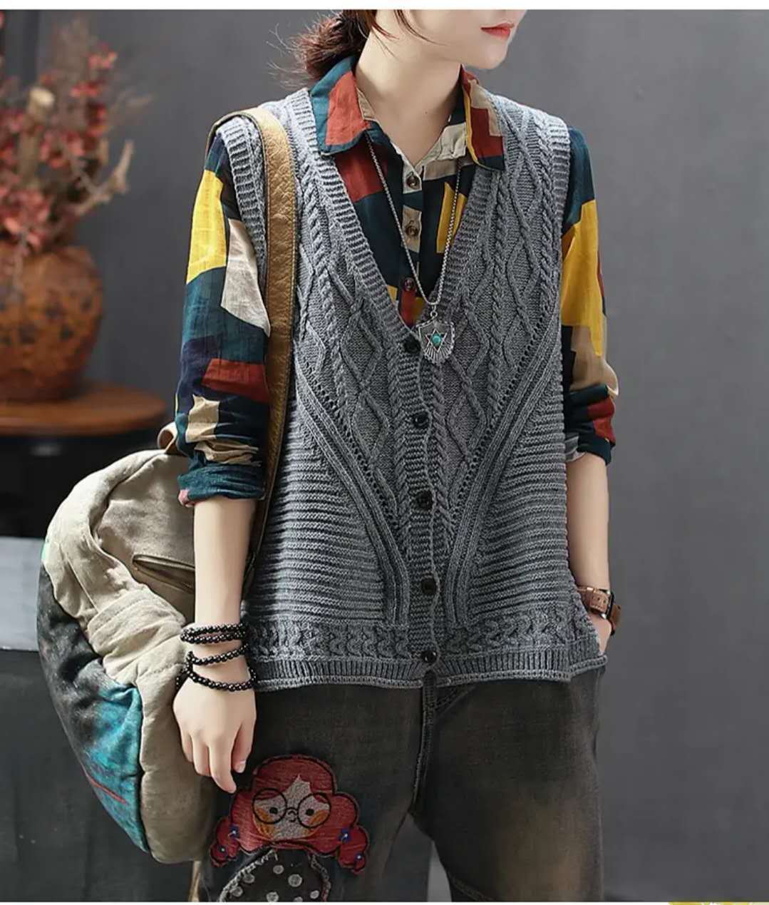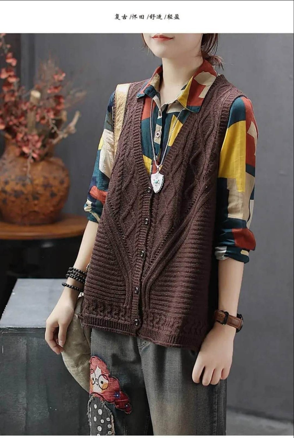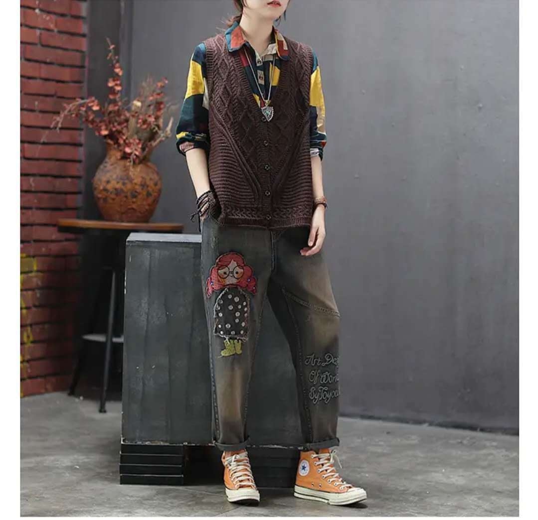 여성용 스웨터 조끼 2023 봄, 가을 새로운 한국 스타일 느슨한 v 넥 풀오버 조끼 민소매 양복 조끼 니트 조끼 유행스토어 가기