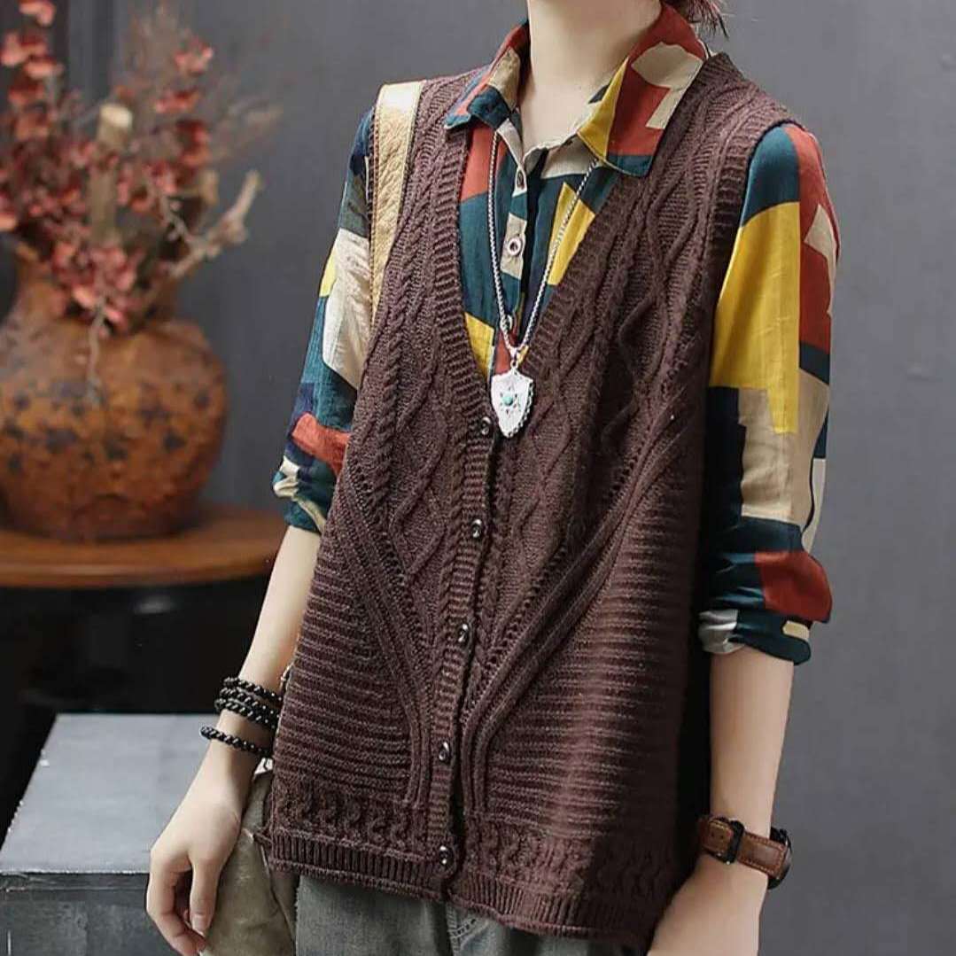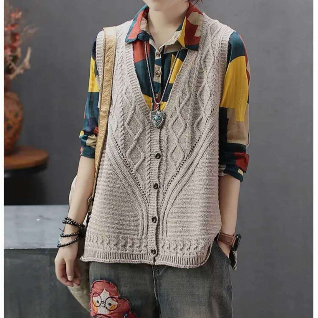 여성용 스웨터 조끼 2023 봄, 가을 새로운 한국 스타일 느슨한 v 넥 풀오버 조끼 민소매 양복 조끼 니트 조끼 유행