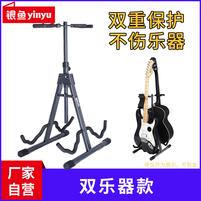 기타 스탠드 수직 스탠드 홈 더블 헤드 목재 전기 플레이스먼트 바닥 스탠딩 휴대용 접이식 기타 스탠드스토어 가기