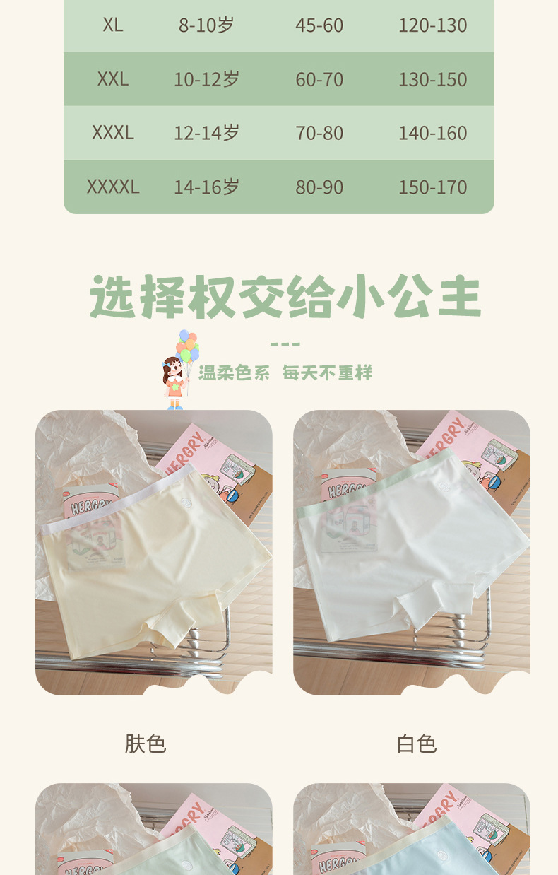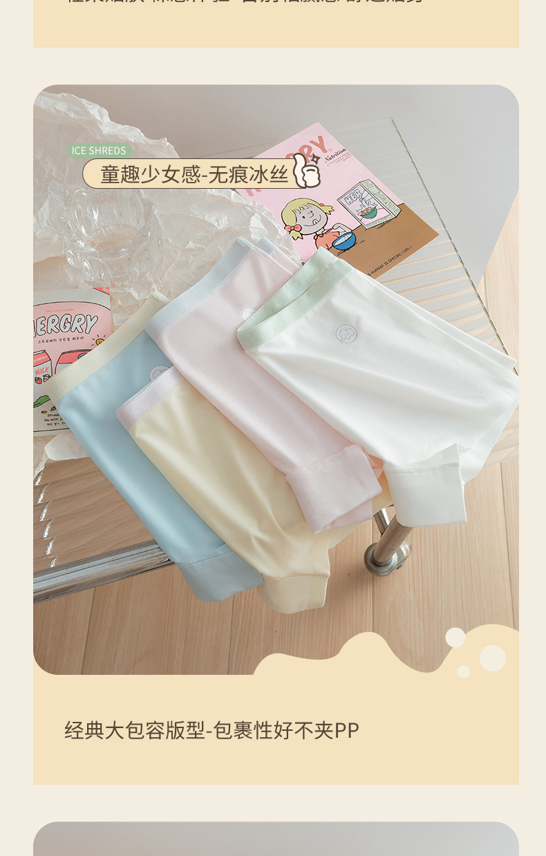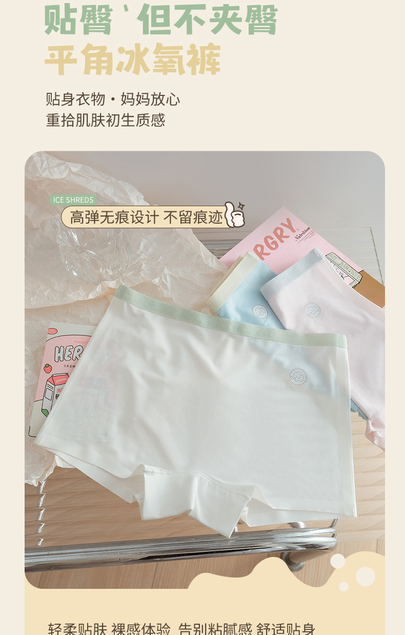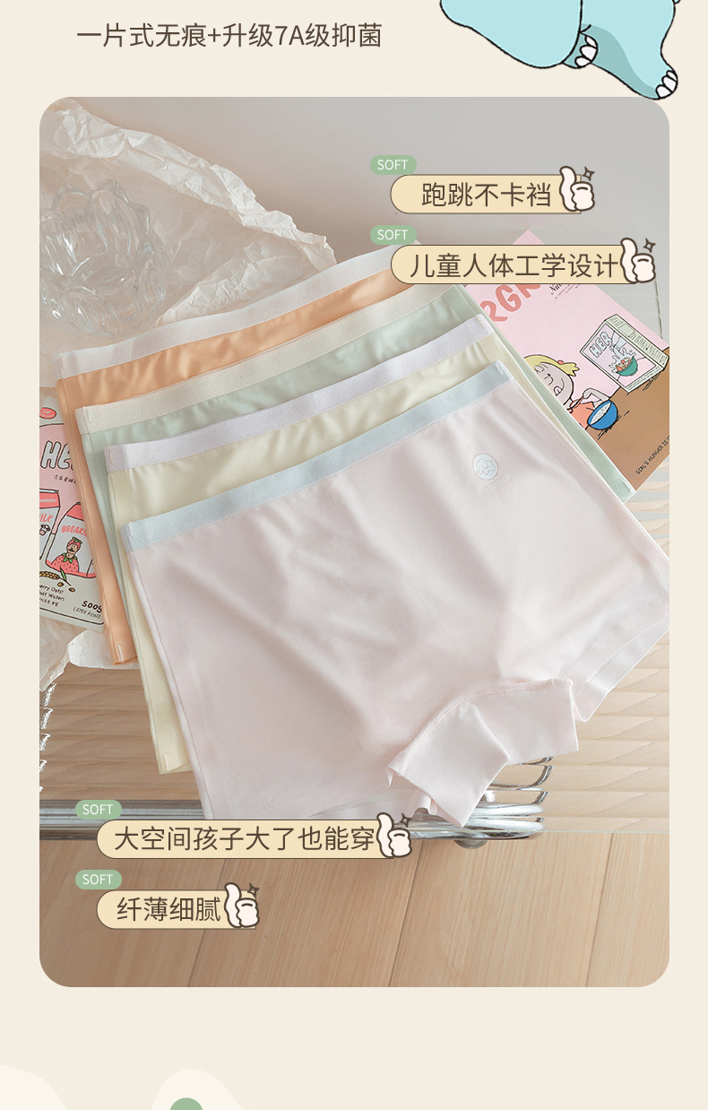 아이스 실크 컬러 대조 편지 코끼리 높은 탄성 어린이 속옷 여성의 7A 세균성 코튼 크로 치 편안한 통기성 소녀 복서 반바지스토어 가기