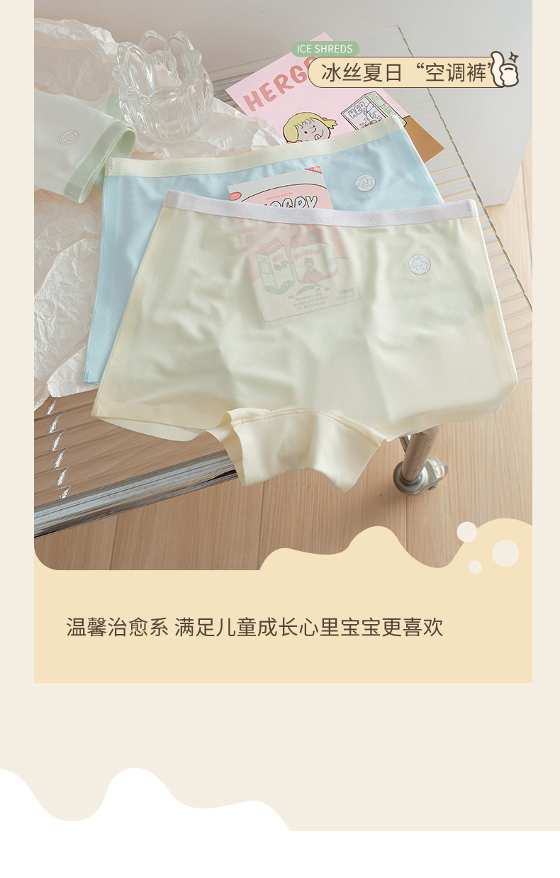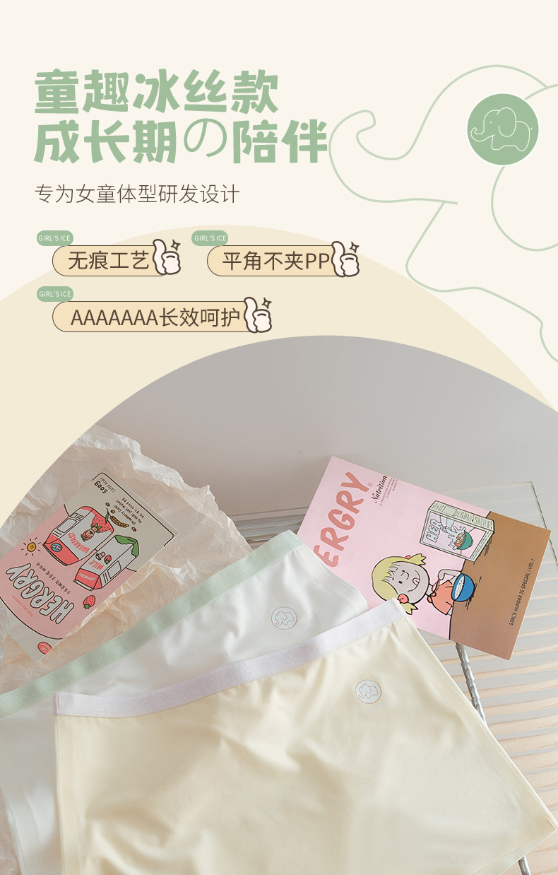 아이스 실크 컬러 대조 편지 코끼리 높은 탄성 어린이 속옷 여성의 7A 세균성 코튼 크로 치 편안한 통기성 소녀 복서 반바지