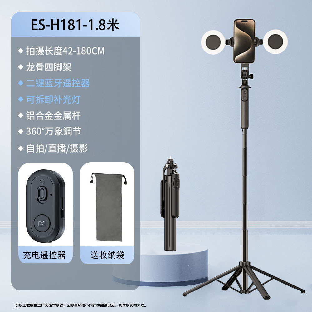 • H181 네 다리 알루미늄 합금 셀카 스틱 블랙-단일 램프-보관 가방