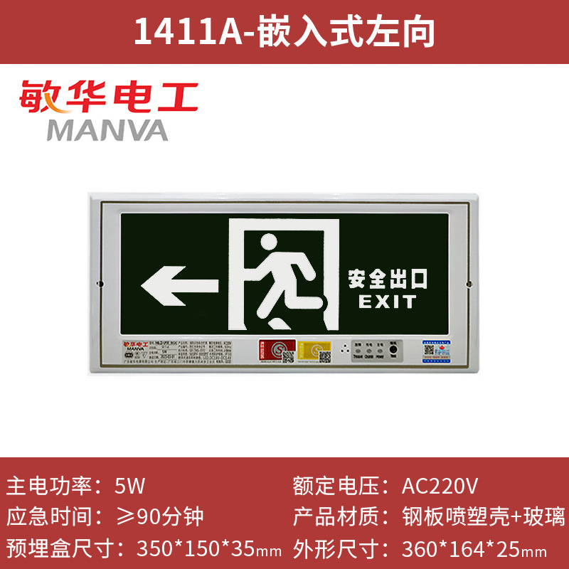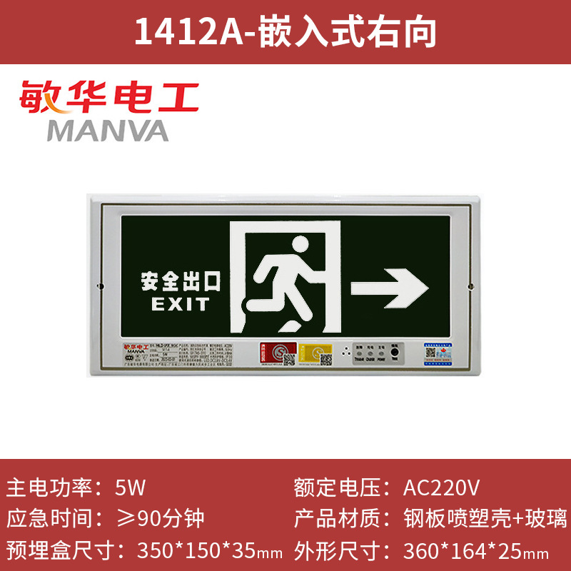 Minhua 숨겨진 내장형 표시등 안전 출구 화재 대피 유도 탈출 표시 비상 표시등