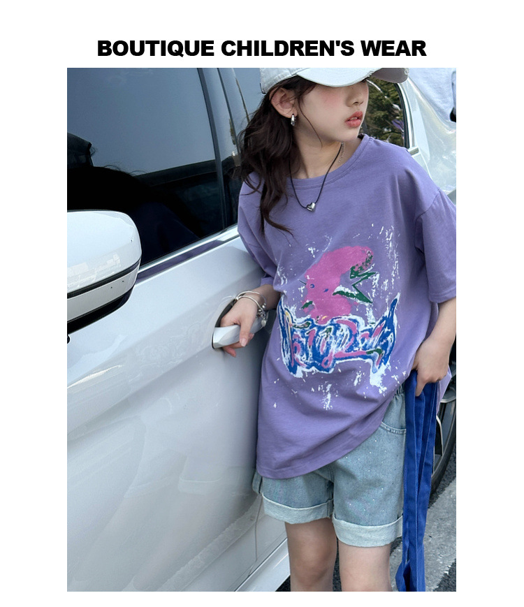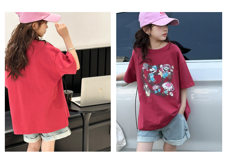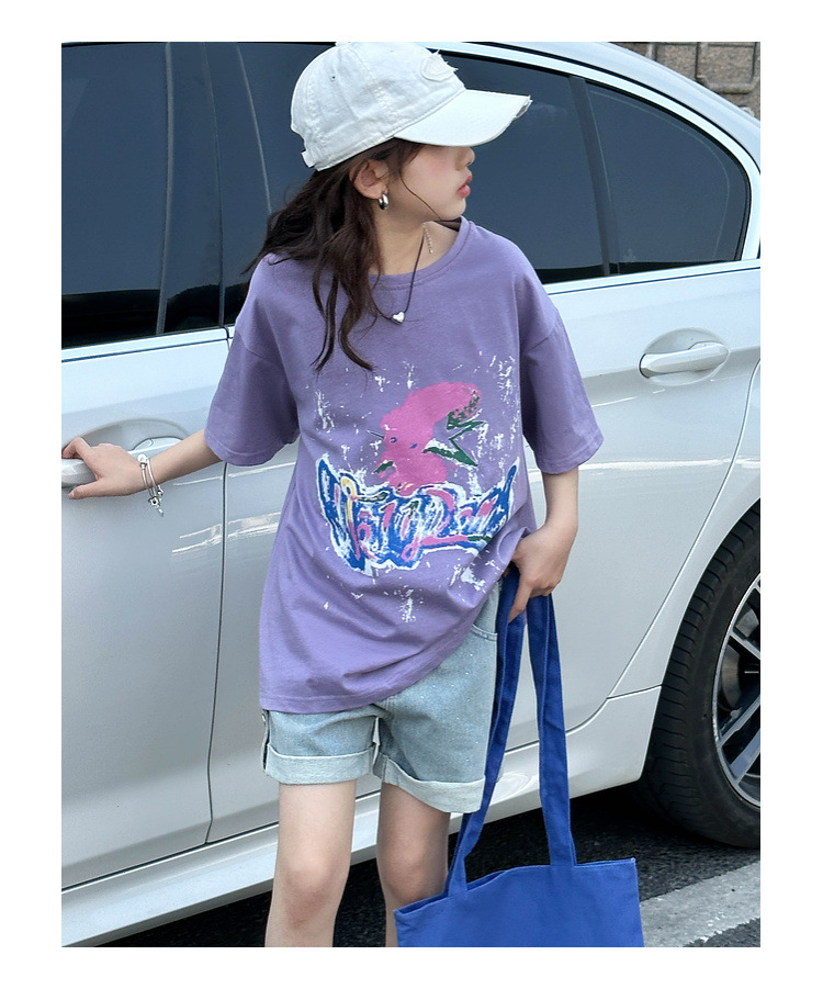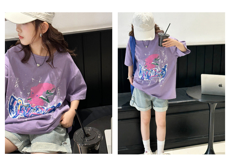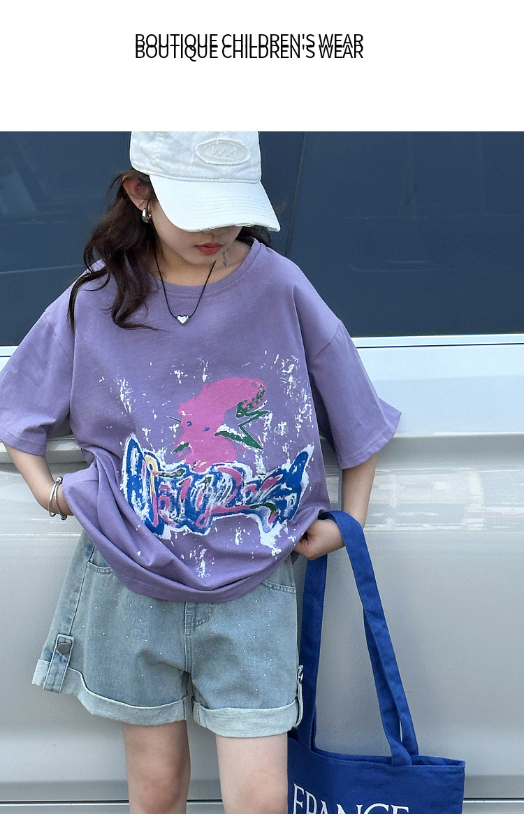 여자 반팔 티셔츠 2025 새로운 여름 여자 유행 브랜드 느슨한 여름 옷 어린이 여름 스타일 큰 어린이 한국 스타일상의스토어 가기