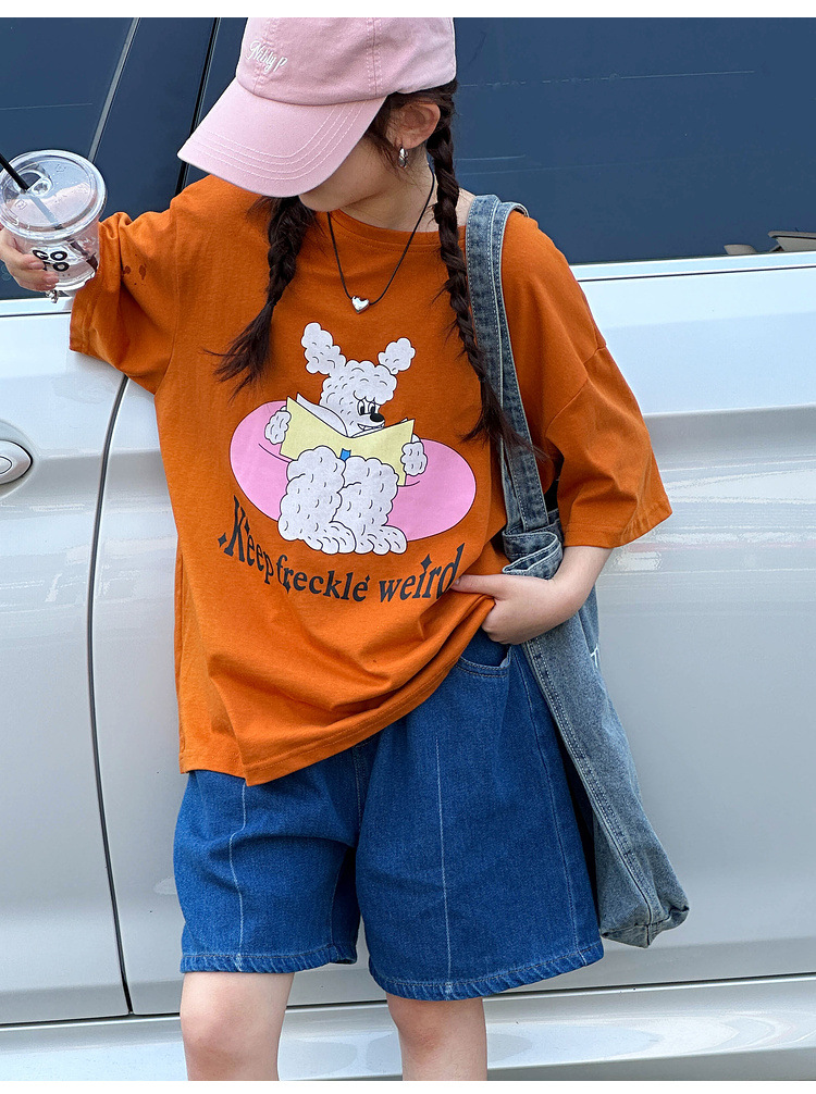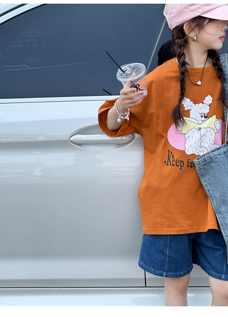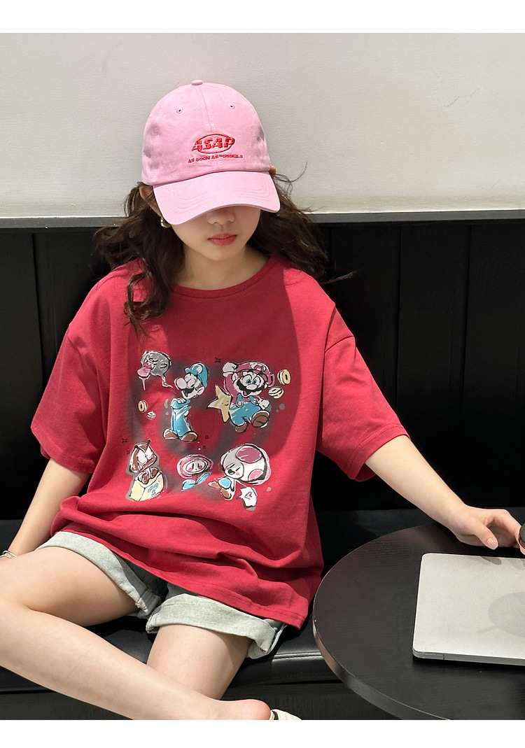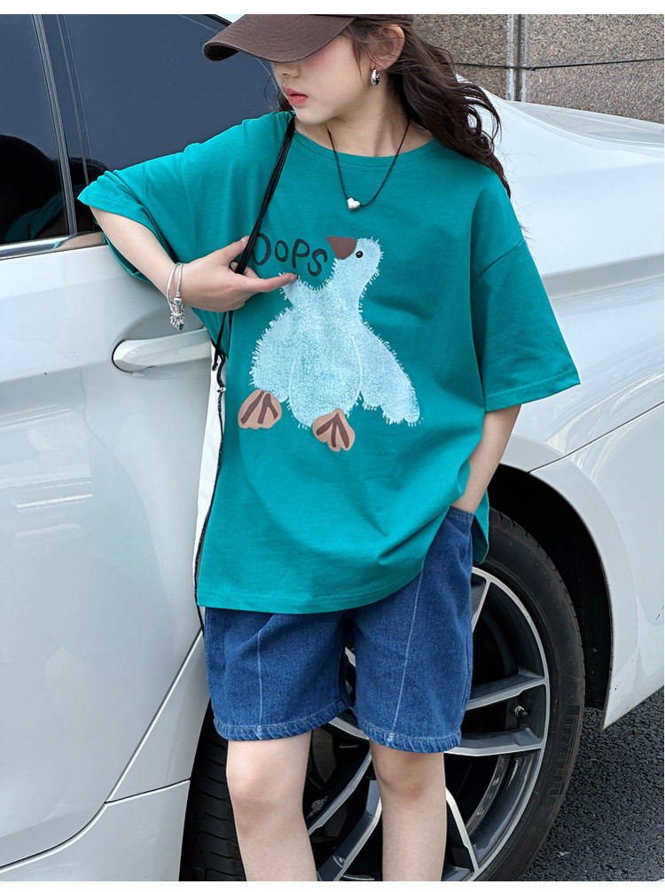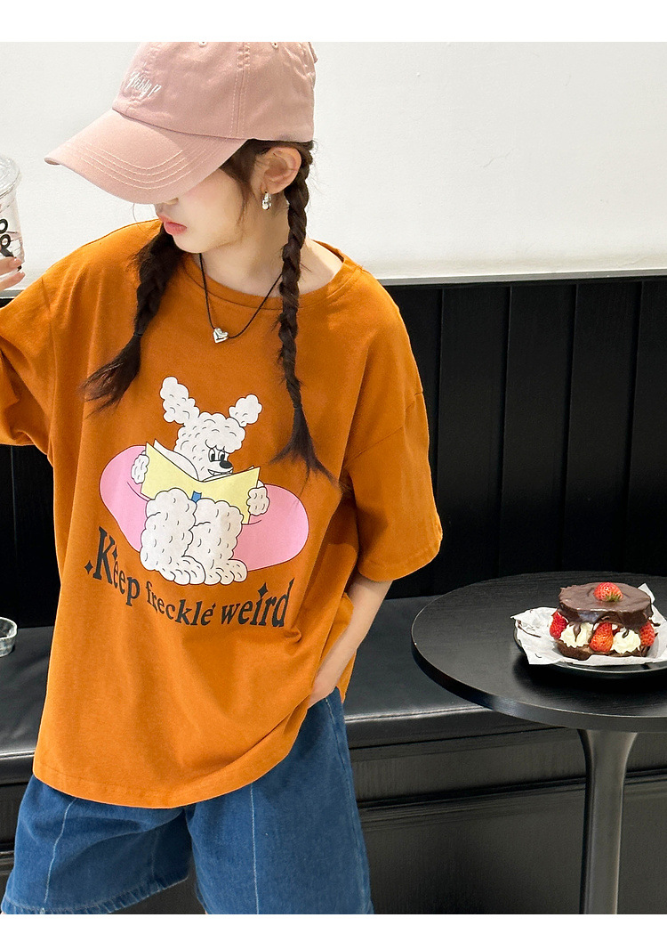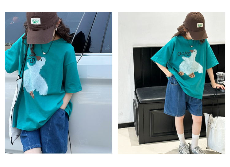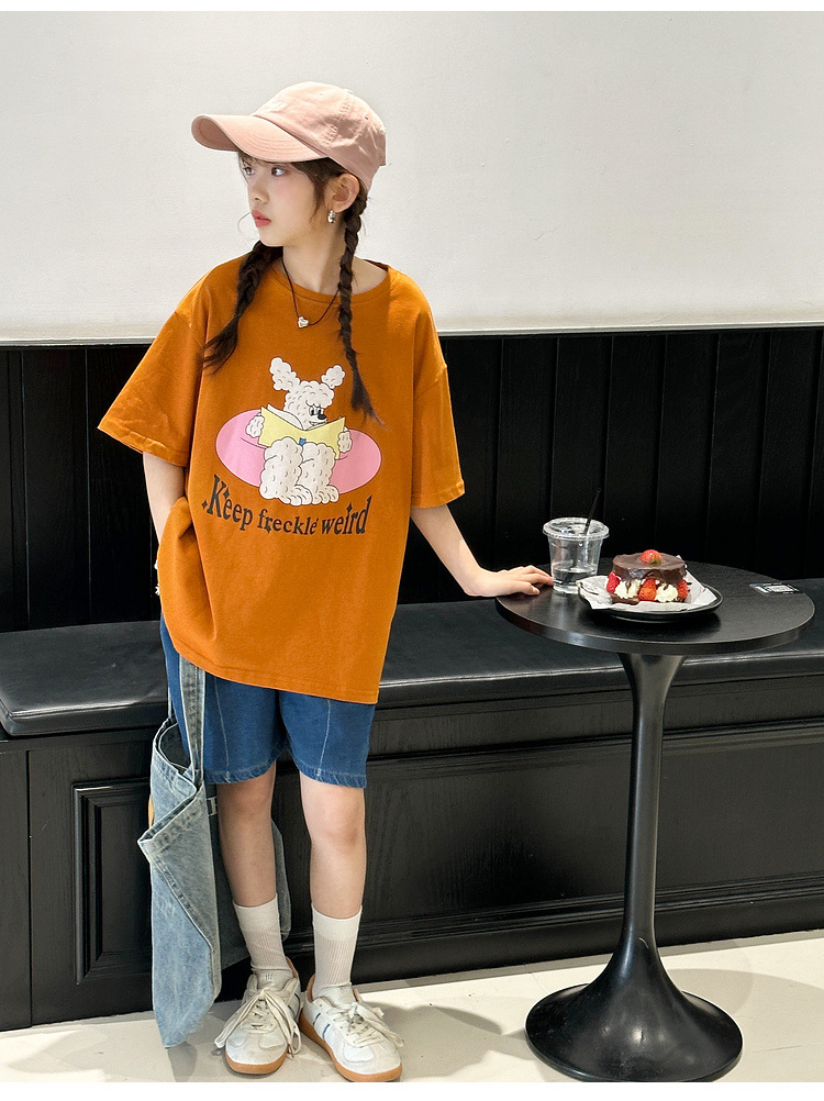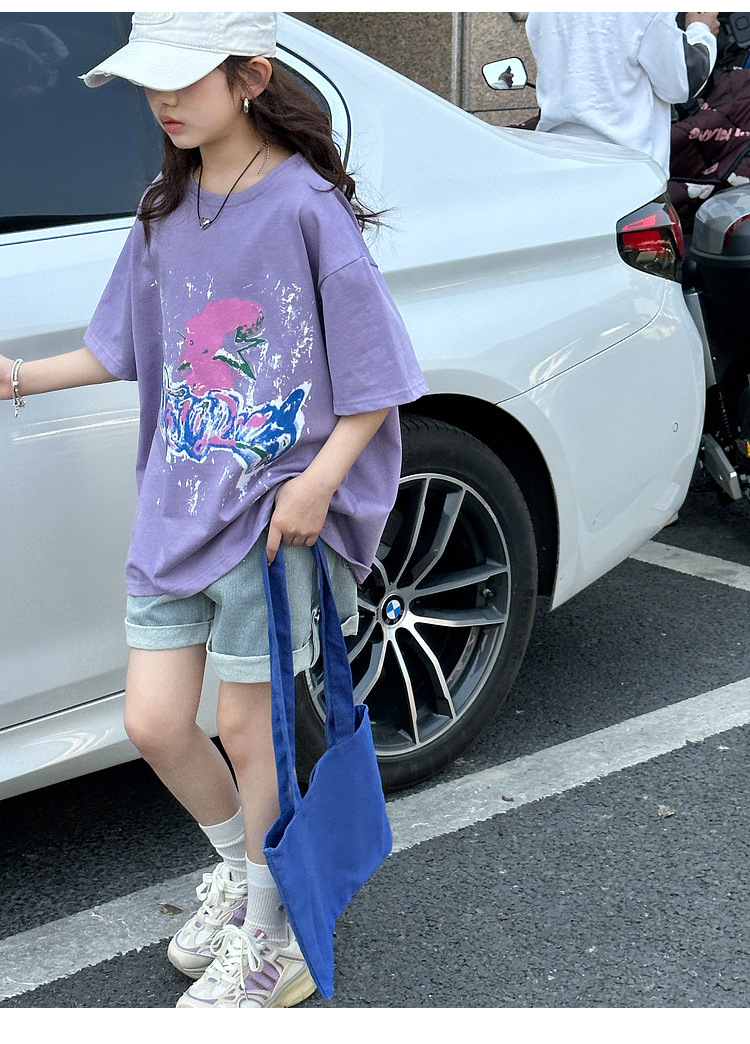 여자 반팔 티셔츠 2025 새로운 여름 여자 유행 브랜드 느슨한 여름 옷 어린이 여름 스타일 큰 어린이 한국 스타일상의