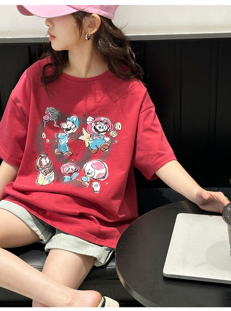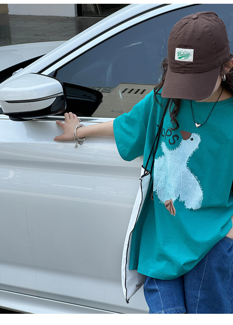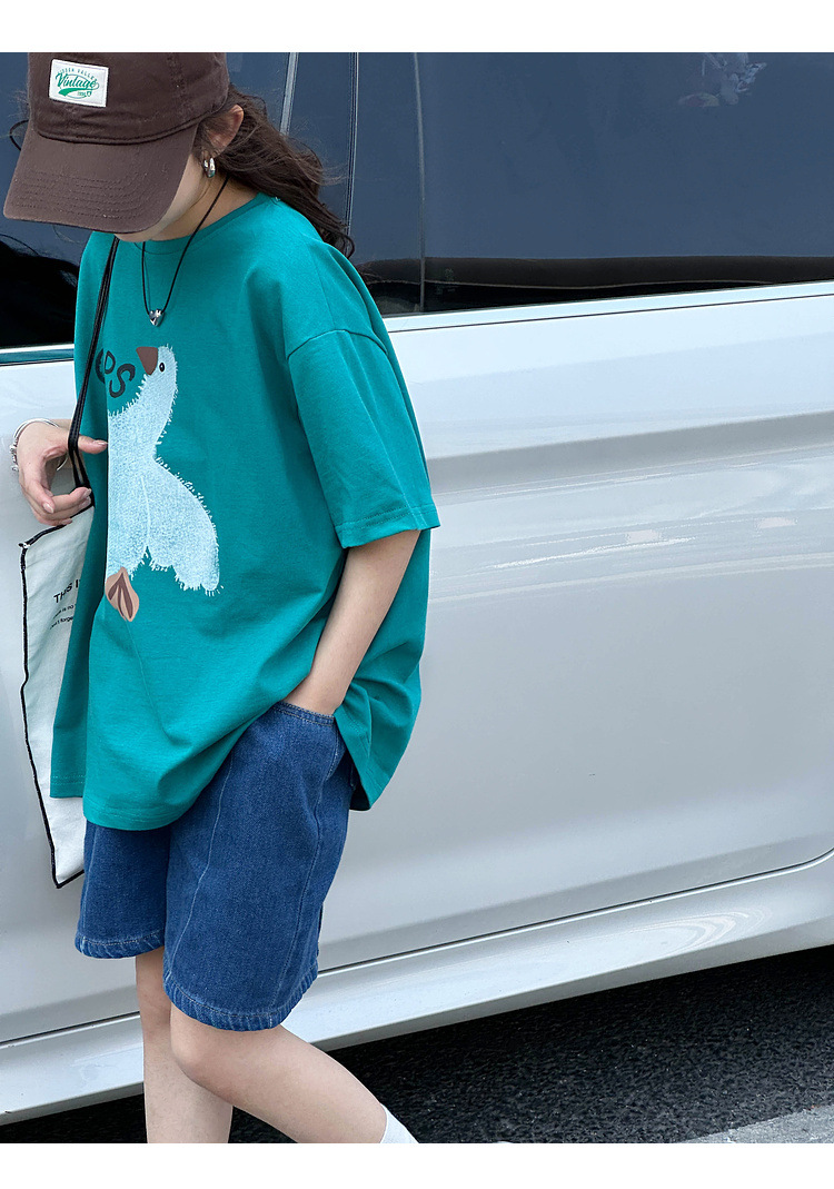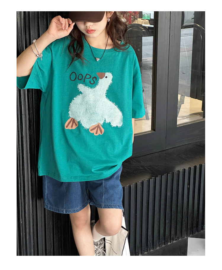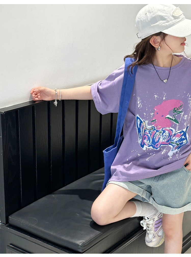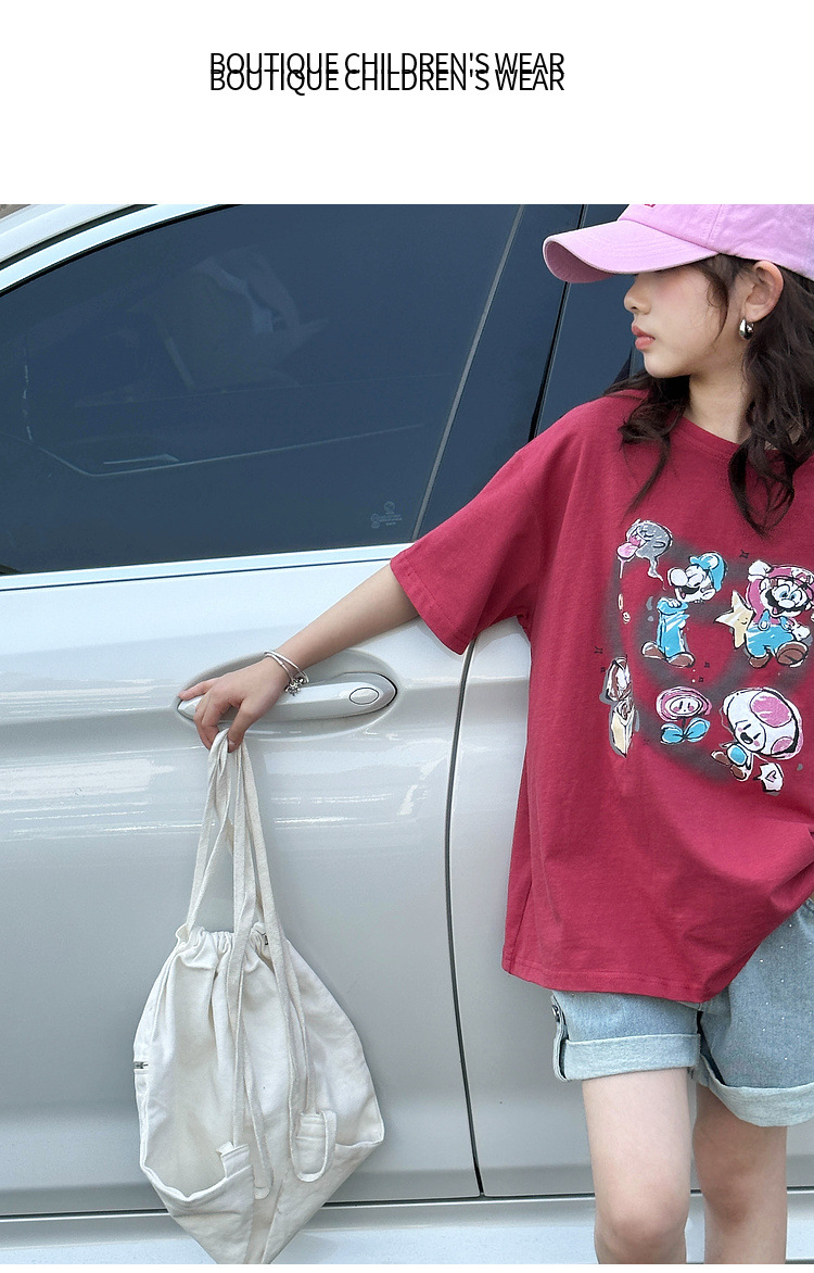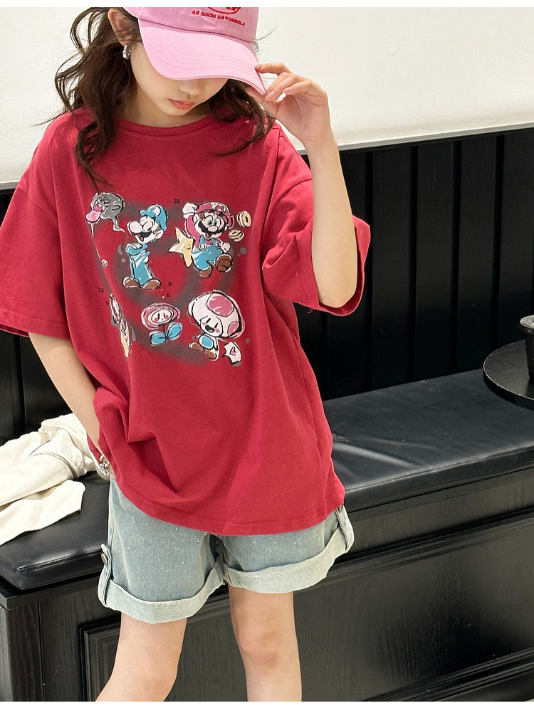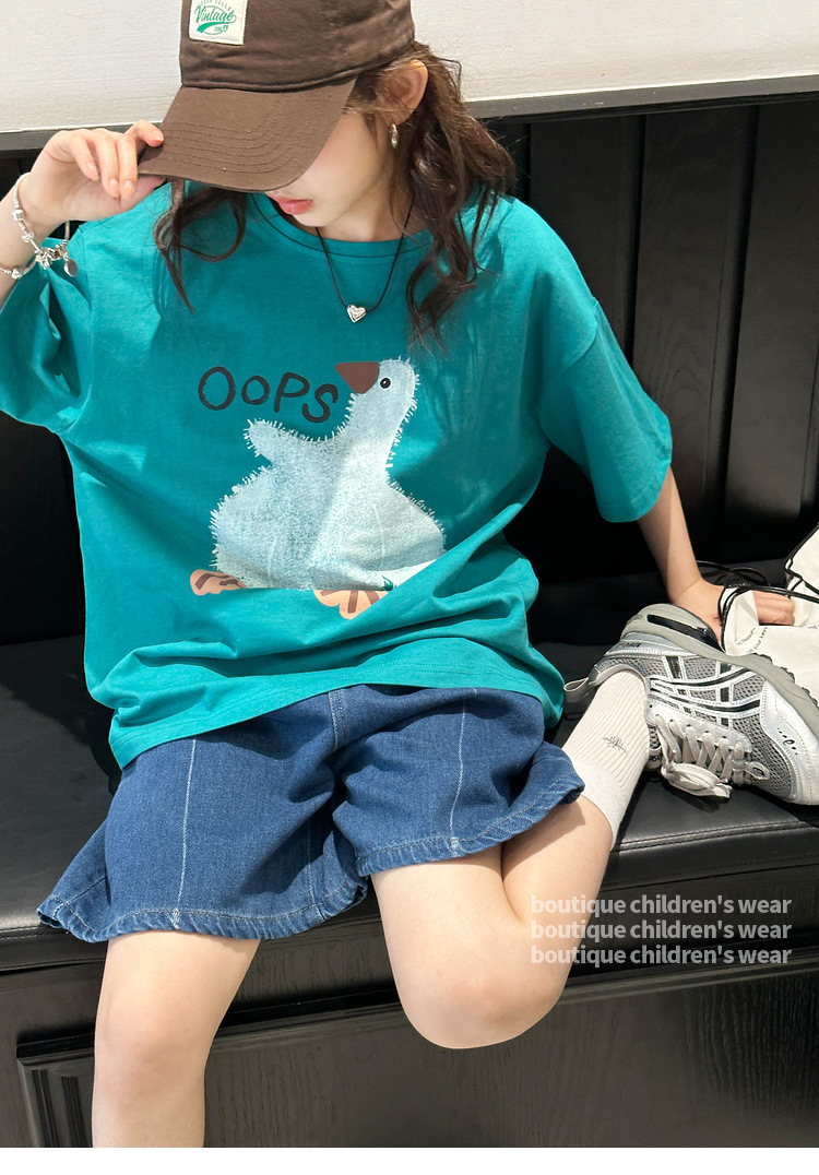 여자 반팔 티셔츠 2025 새로운 여름 여자 유행 브랜드 느슨한 여름 옷 어린이 여름 스타일 큰 어린이 한국 스타일상의