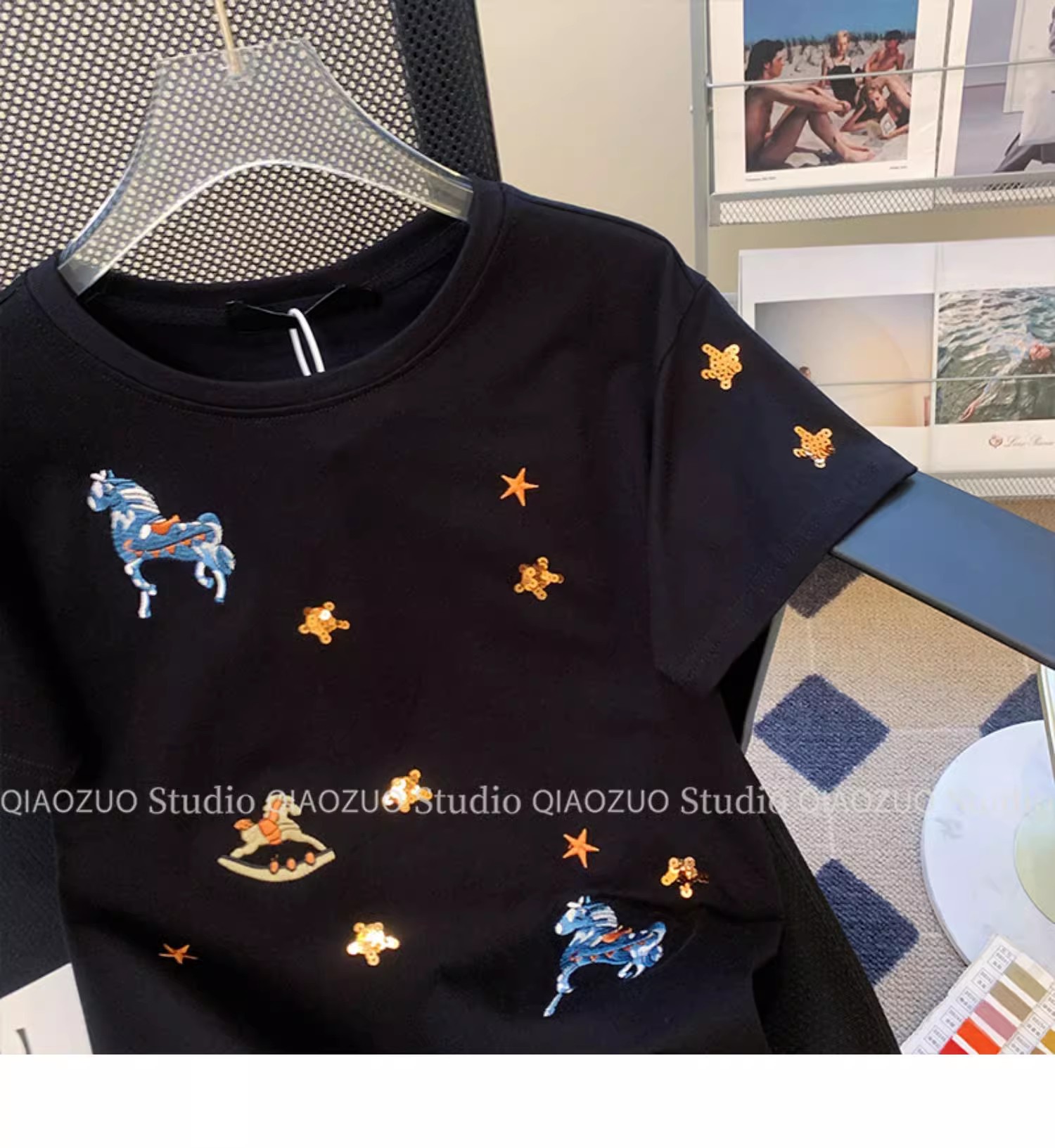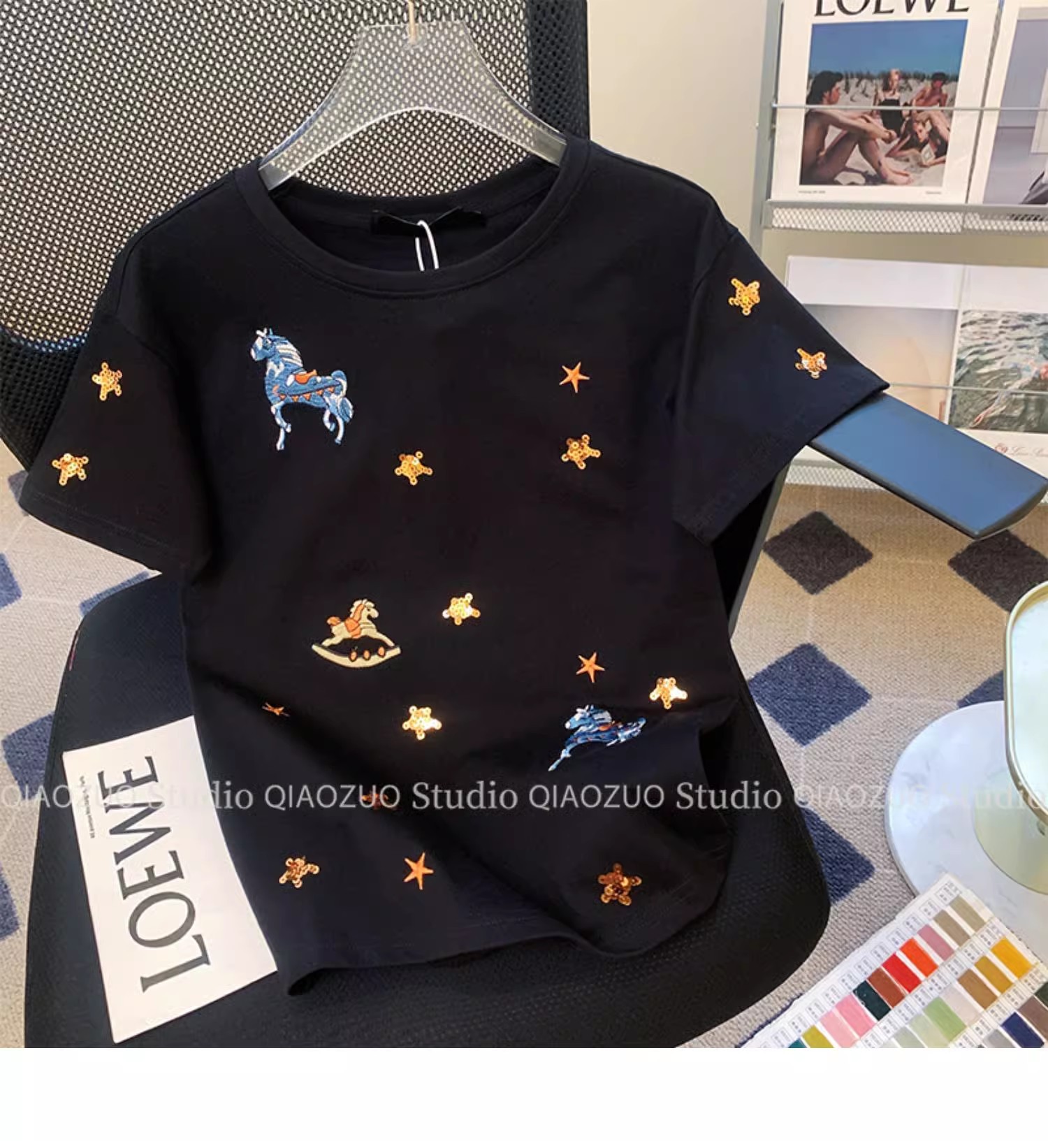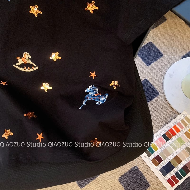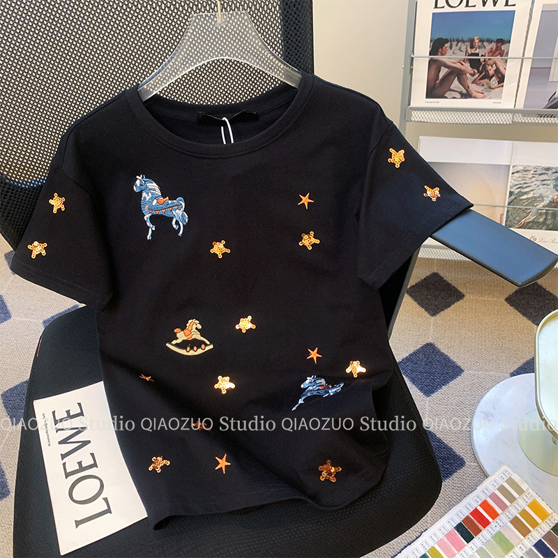 아울렛 ~ 유단 빅 브랜드 아메리칸 레트로 디자인 센스 틈새 반팔 티셔츠 여성용 여름 세련된 루즈 탑스토어 가기