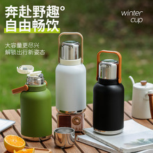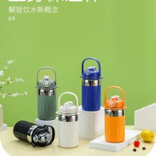 新款保温杯高颜值手提壶不锈钢保温壶大容量吸管水杯双饮杯批发