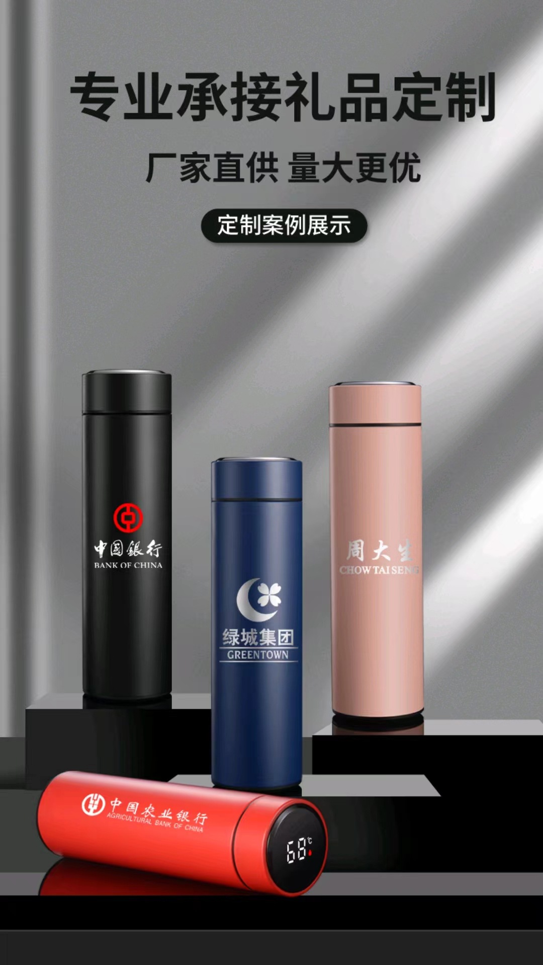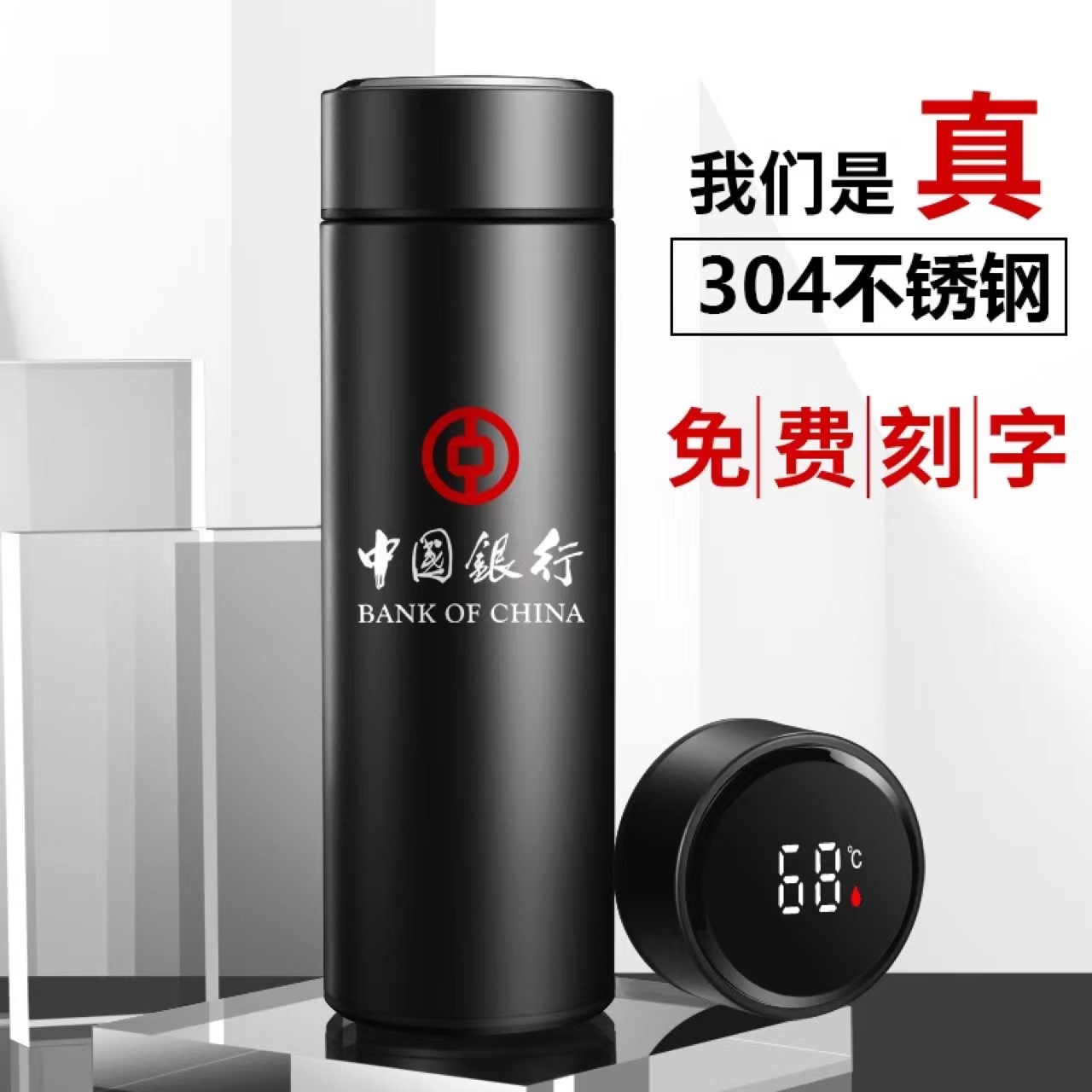 304不锈钢保温杯智能温显商务直身杯车载水杯礼品温度杯logo印制