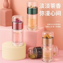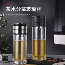 高硼硅茶水分离杯隔热玻璃杯双层泡茶杯子办公室商务便携个人水杯