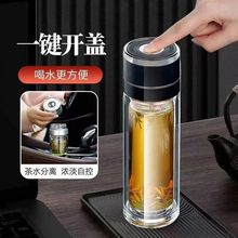 一键单手开盖茶水分离杯速开杯隔热加厚双层玻璃杯广告logo印制