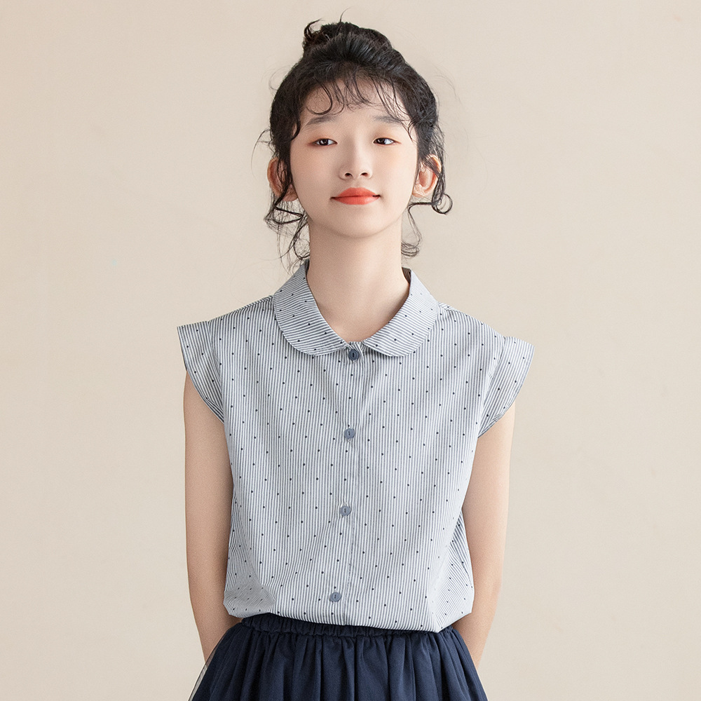 여아 스트라이프 베이비돌 셔츠 여름 신상 고품질 얇은 면 블루 메쉬 랜턴 스커트 세트