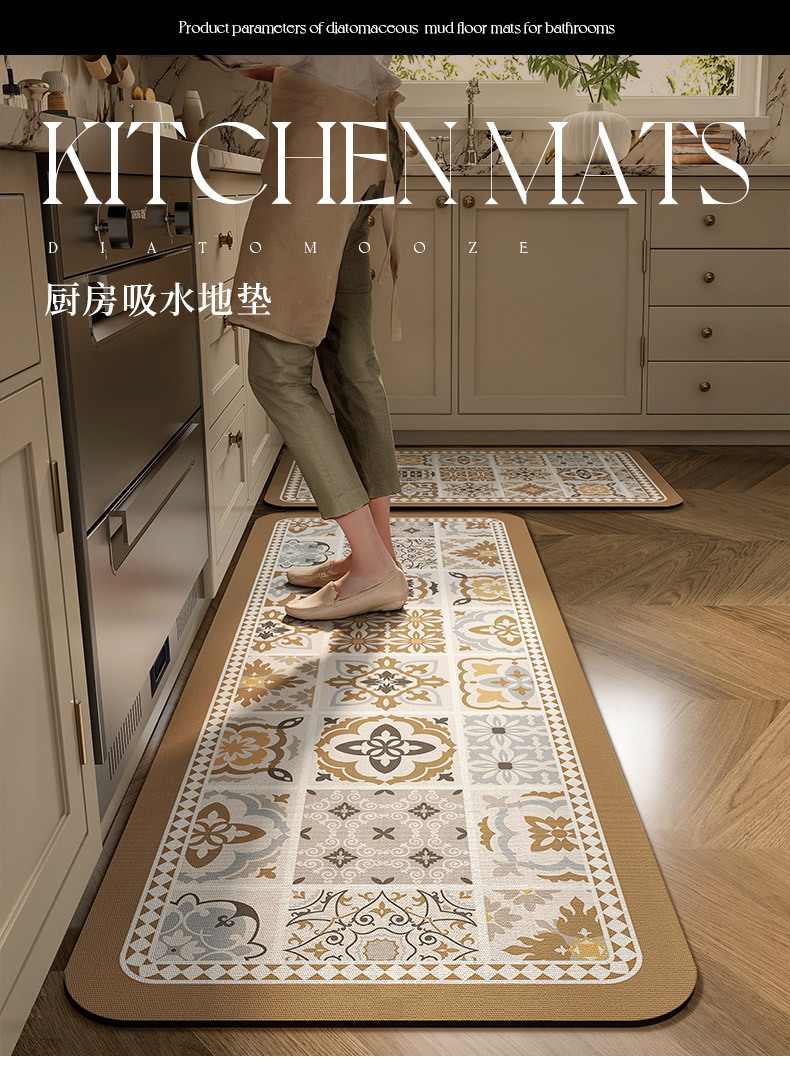 주방 특수 디 아톰 진흙 흡수성 매트 비 슬립 오일-증거 미국 스타일 레트로 카펫 먼지 방지 오일 흡수 워시프리 발 매트스토어 가기