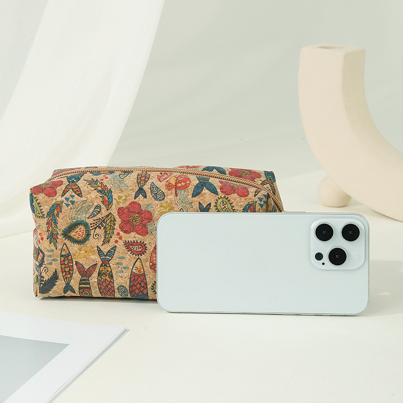 厂家原创高级软木系列新款印花 手提大容量化妆品包