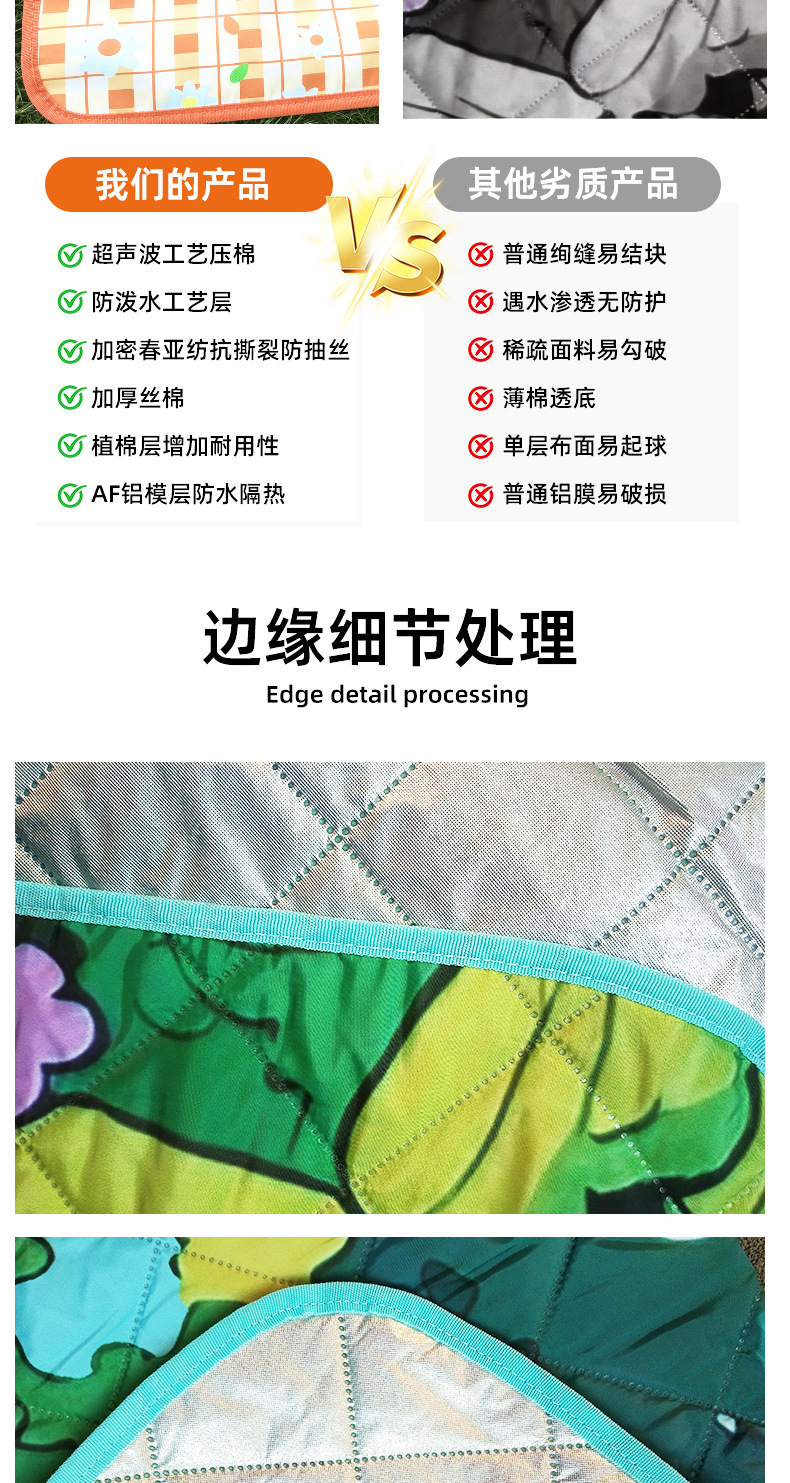 맞춤형 두꺼운 야외 피크닉 매트, 여름 캠핑용 방습 방수 매트, 초음파 공정 야외 알루미늄 필름 캠핑 매트