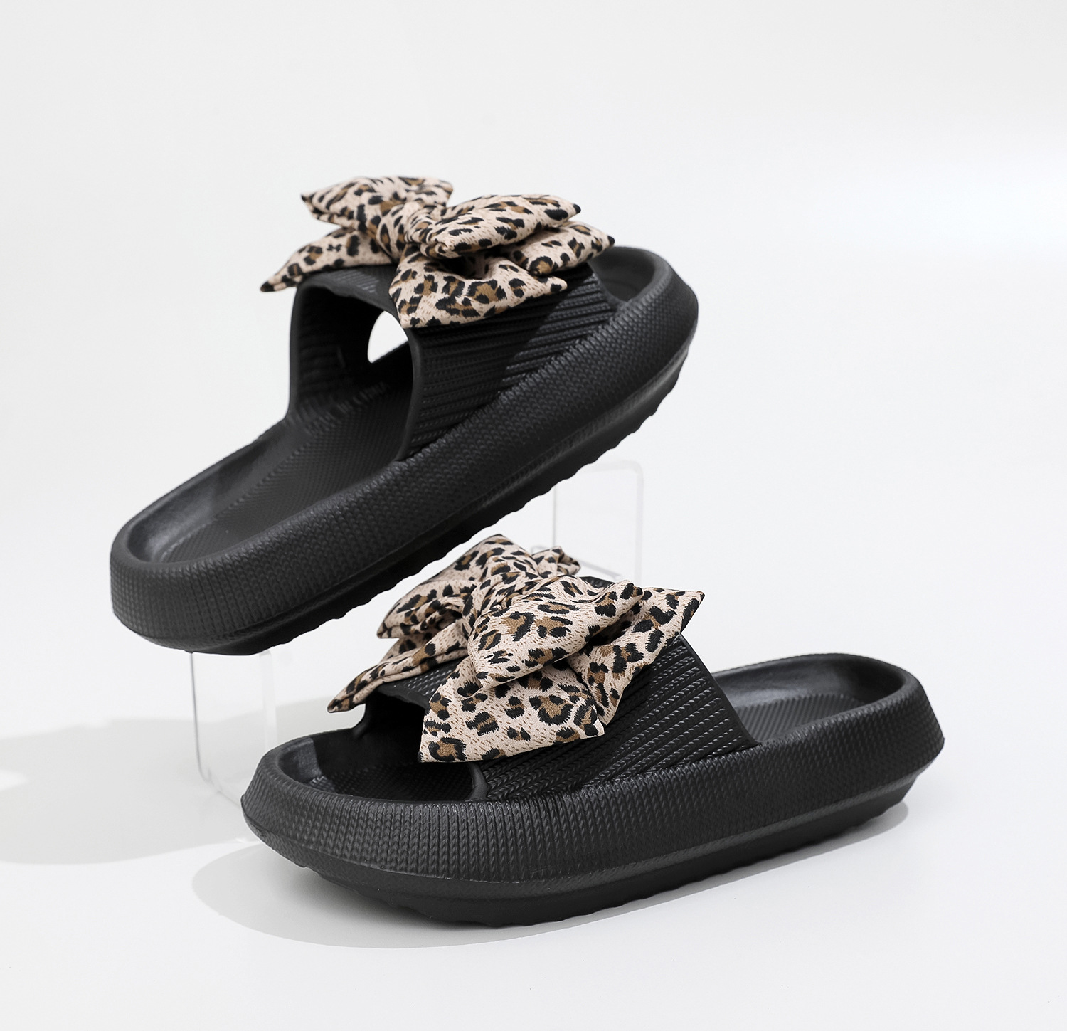 Ins 새로운 유럽 및 미국 국경 핫 판매 EVA 느낌 두꺼운 밑바닥 레오파드 보우 샌들 도매 AliExpress