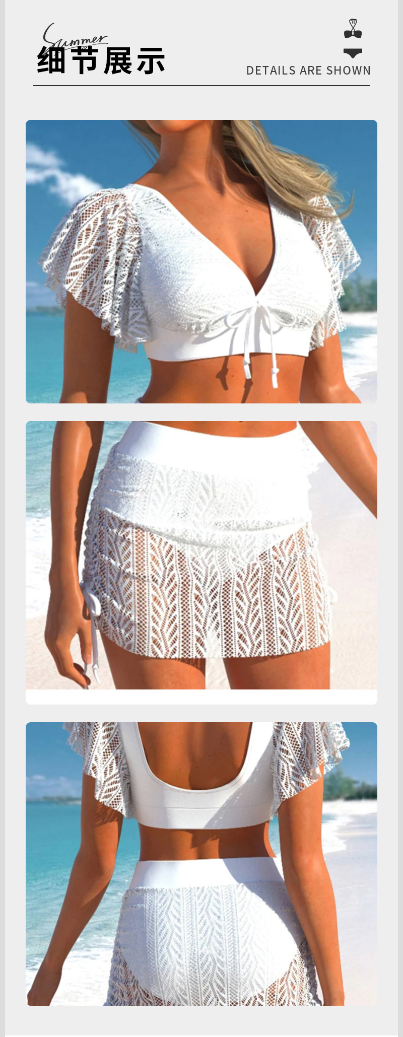 아마존 여름 솔리드 컬러 하이 허리 수영 트렁크 스커트 세트 비키니 여성용 스플릿 수영복