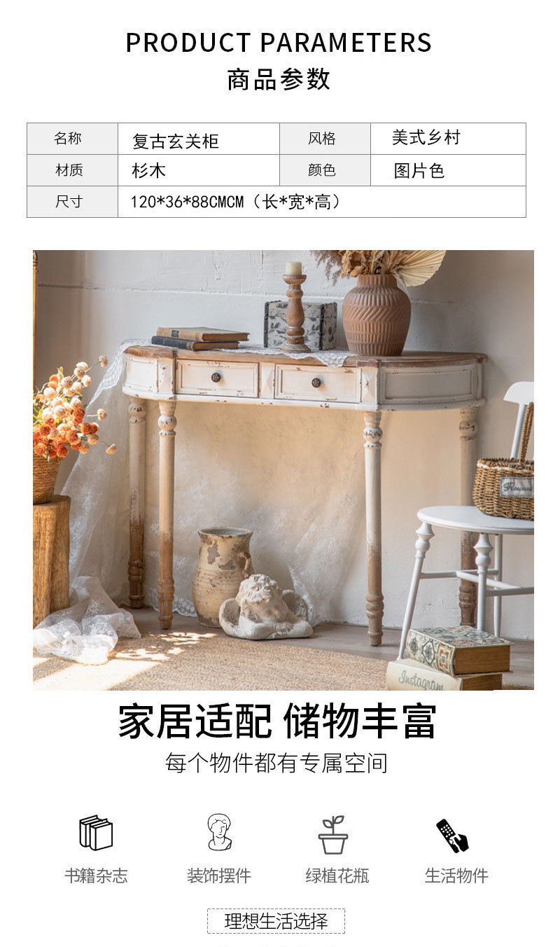 미국 목가적 인 스타일 복도 초박형 Averway 내각 홈스테이 작은 아파트 복고풍 테이블 단단한 나무 오래된 입구 홀 입구