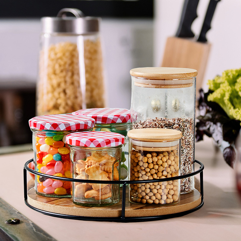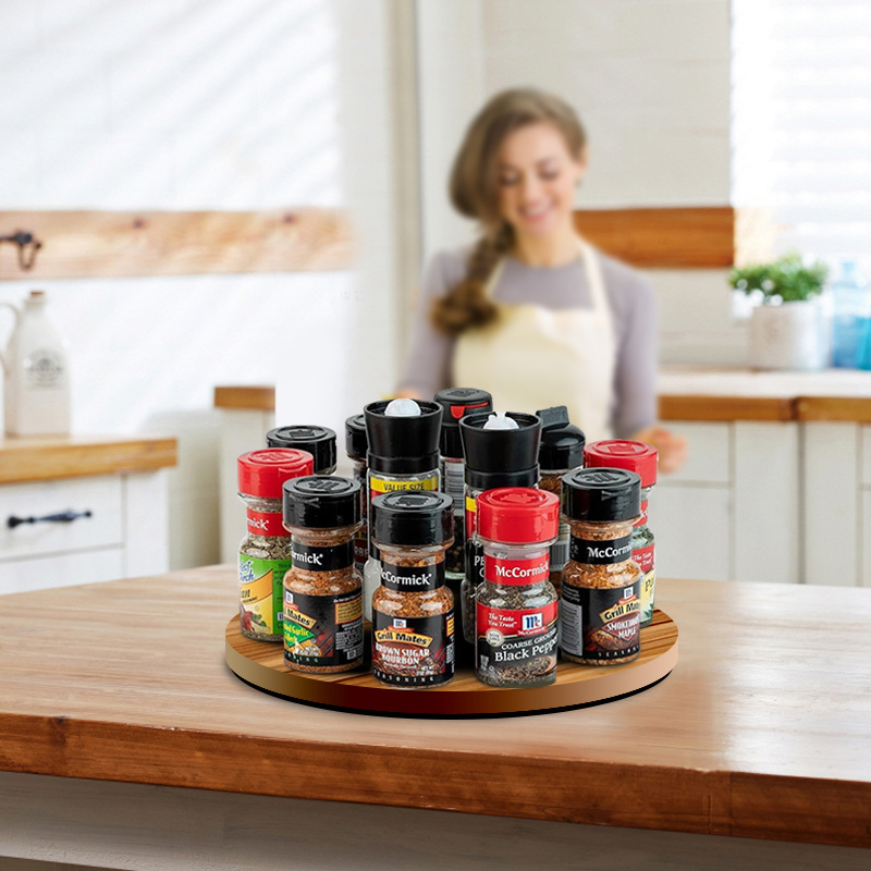 아마존 폭발성 주방 나무 철 회전 랙 스토리지 랙 스파이스 조미료 탱크 회전 트레이