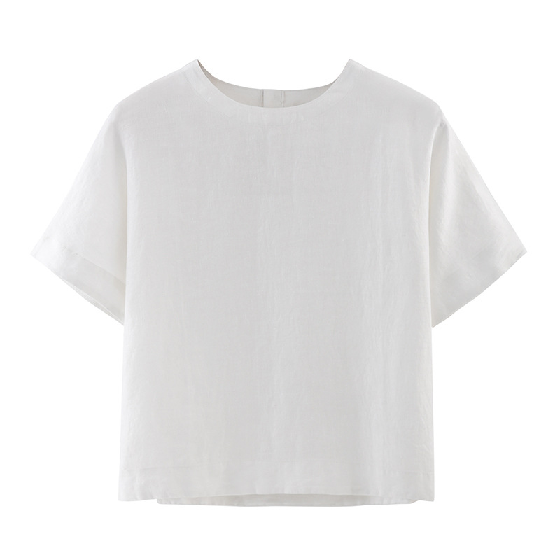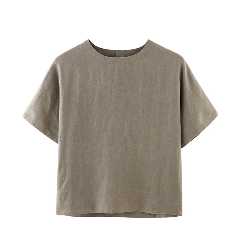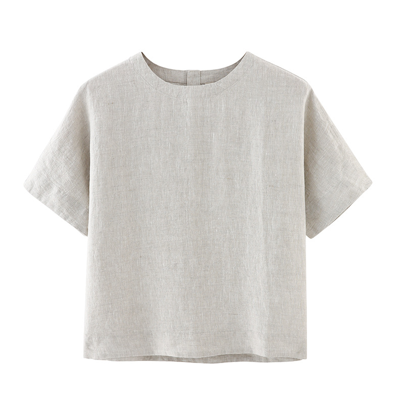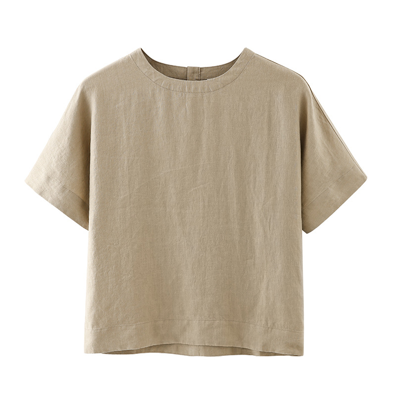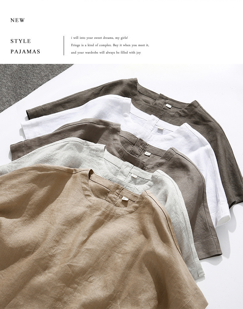 일본 스타일 여성 단색 잠옷 반팔 블라우스 단색 프랑스 린넨 탑 반팔 티셔츠 수출용스토어 가기