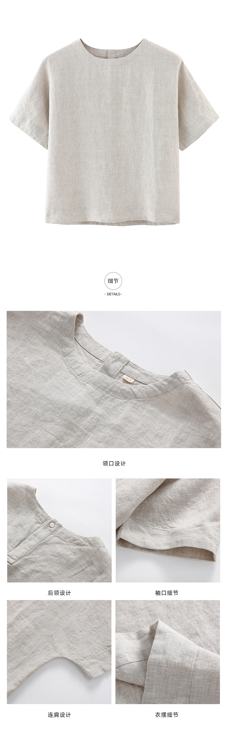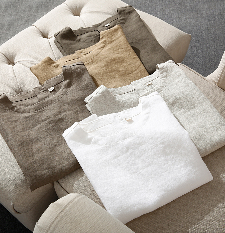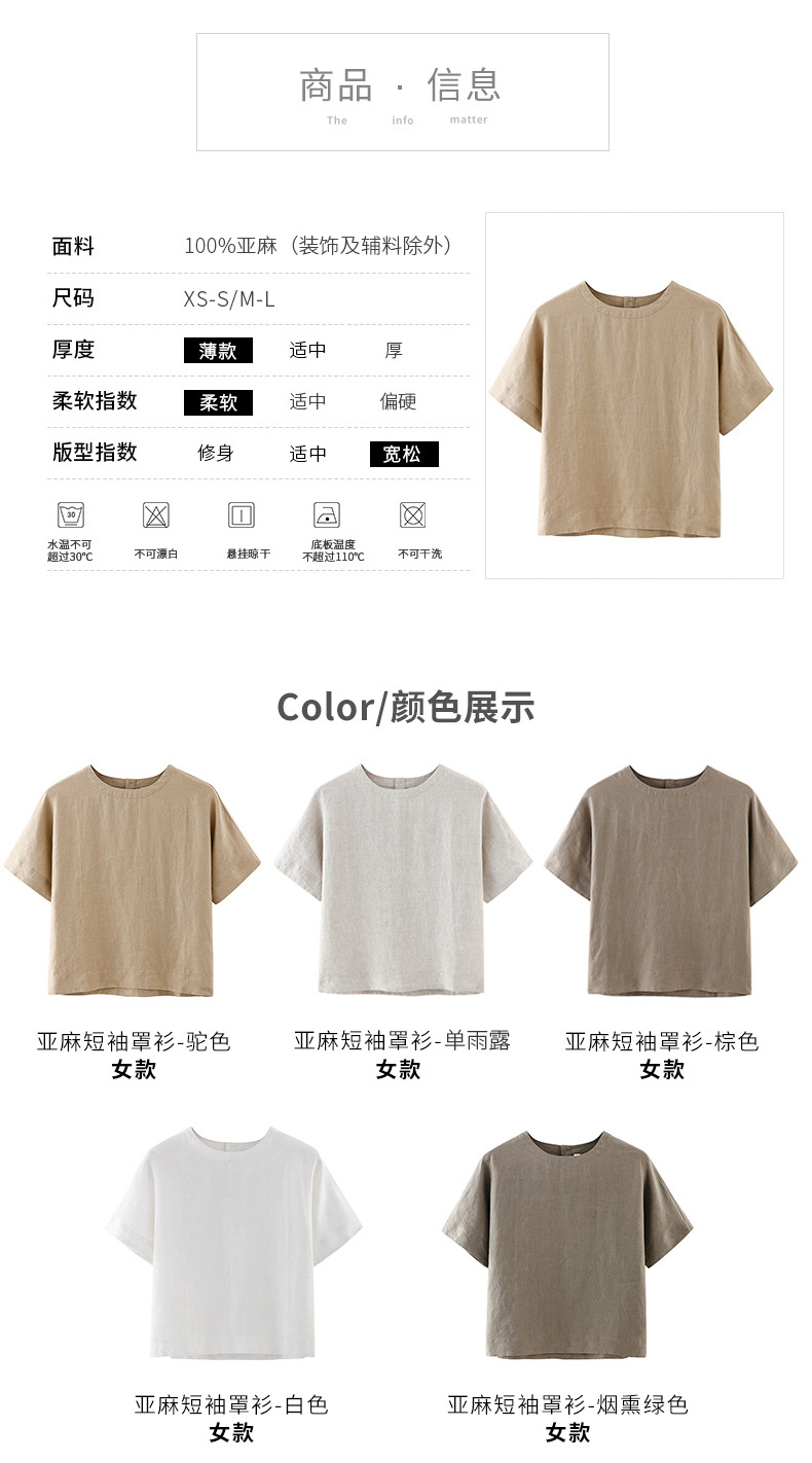 일본 스타일 여성 단색 잠옷 반팔 블라우스 단색 프랑스 린넨 탑 반팔 티셔츠 수출용스토어 가기