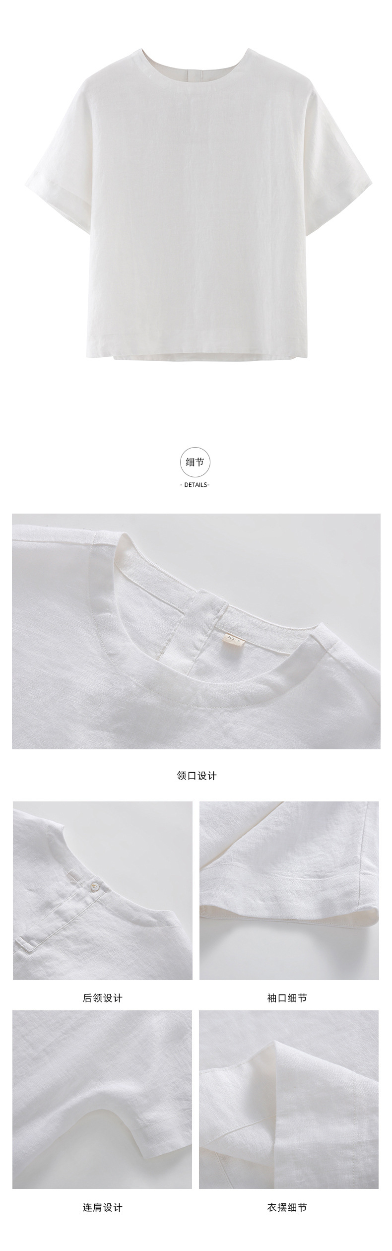 • 리넨 짧은 소매 블라우스-화이트