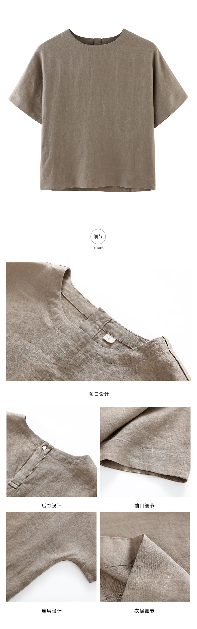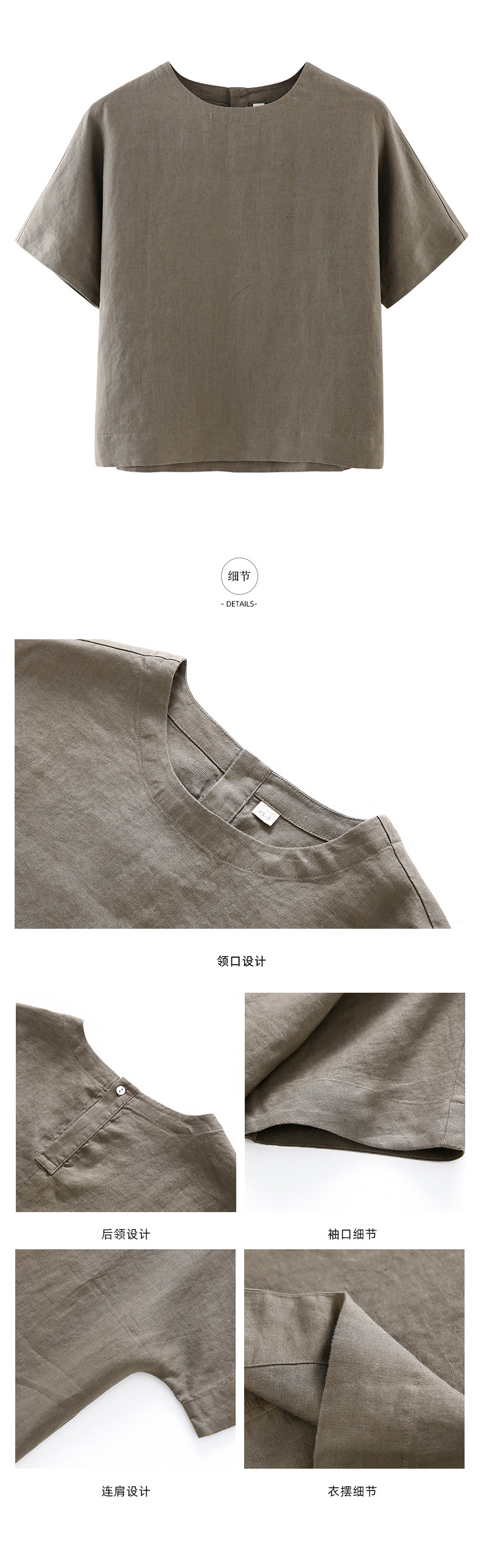 • 리넨 짧은 소매 블라우스-라이트 그레이 다크 브라운