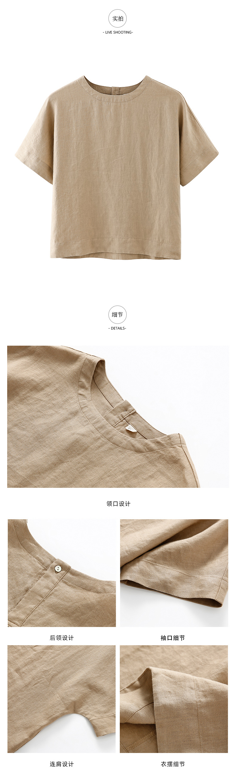 • 리넨 짧은 소매 블라우스-카멜