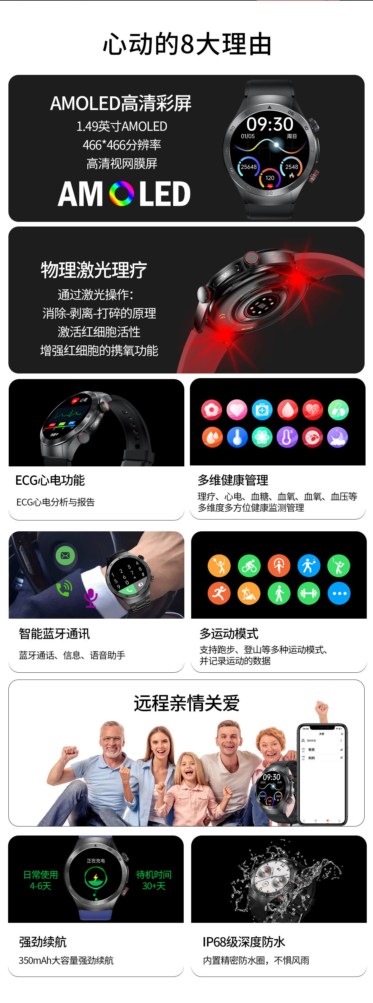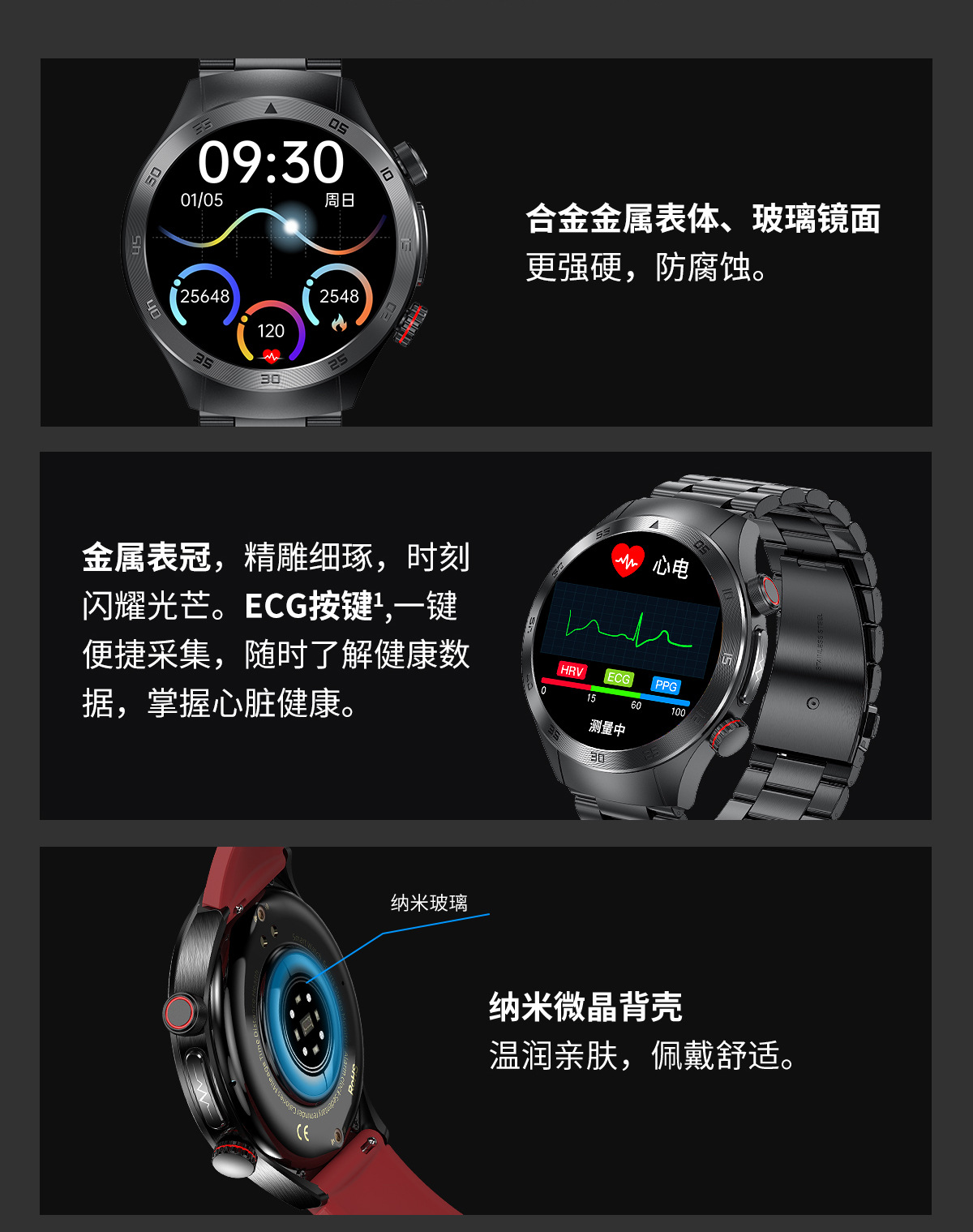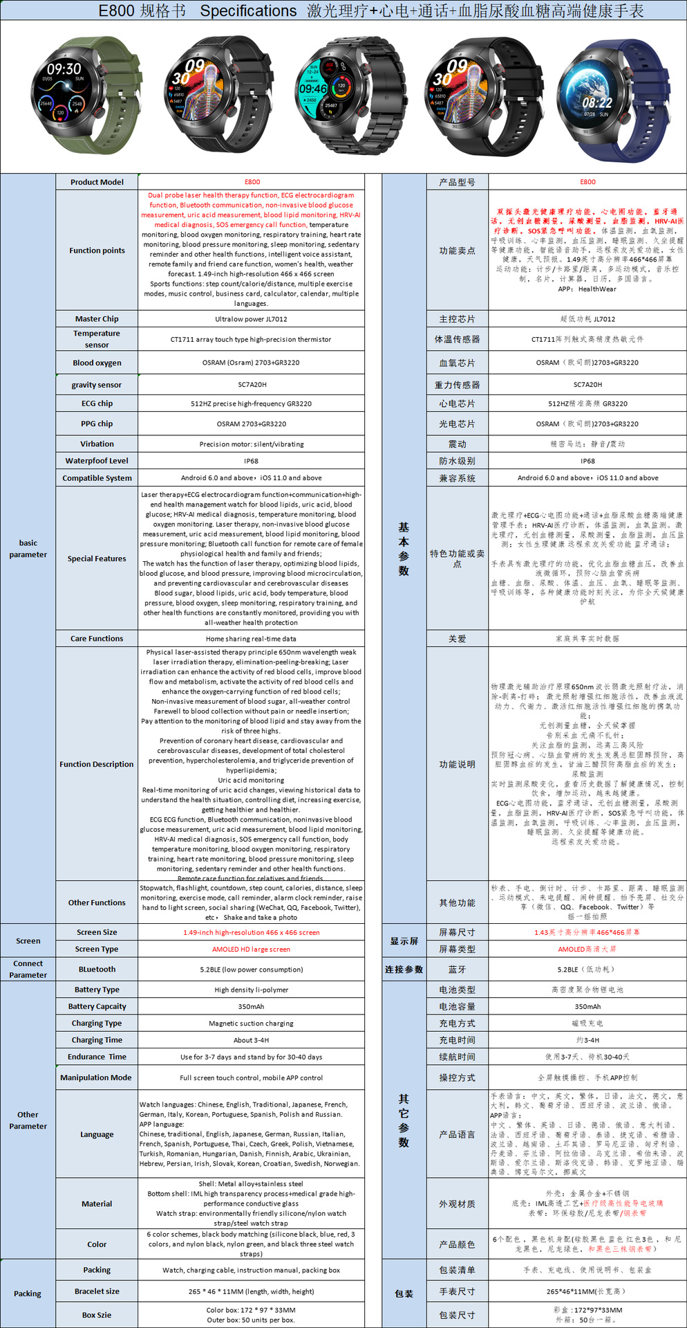 새로운 E800 스마트 시계 ECG 블루투스 통화 체지방 혈압 혈당 심장 박동 건강한 다중 운동