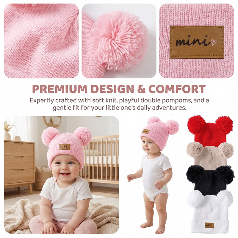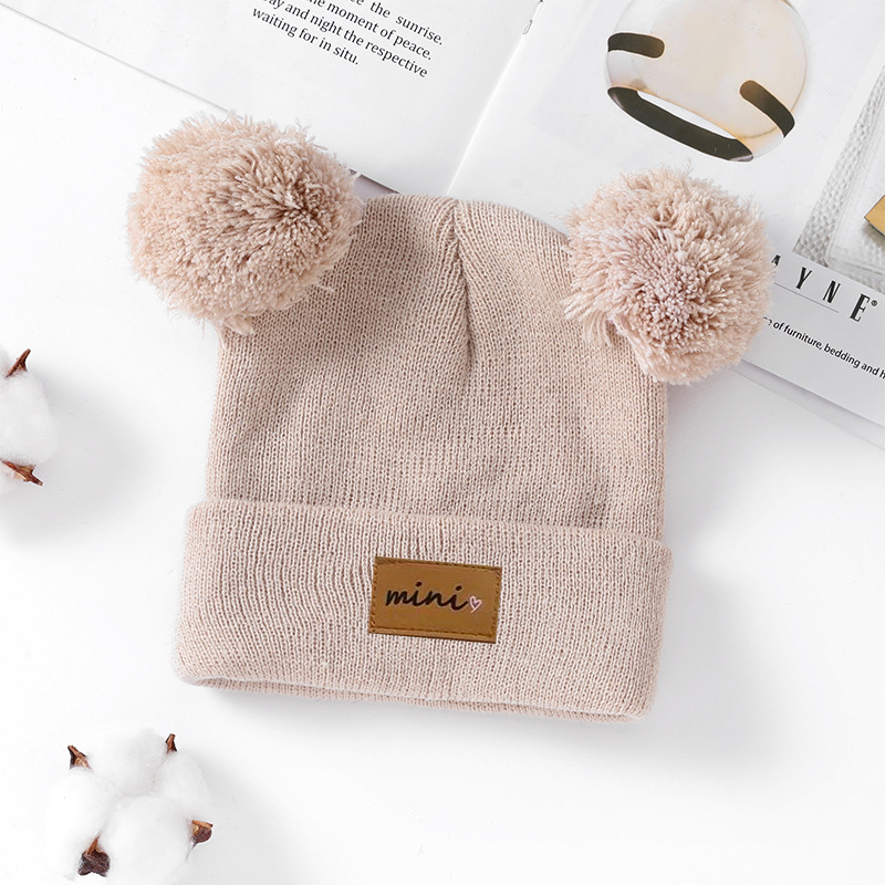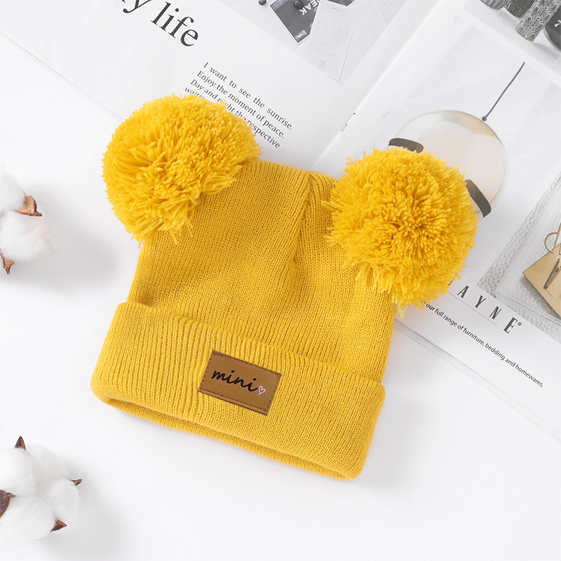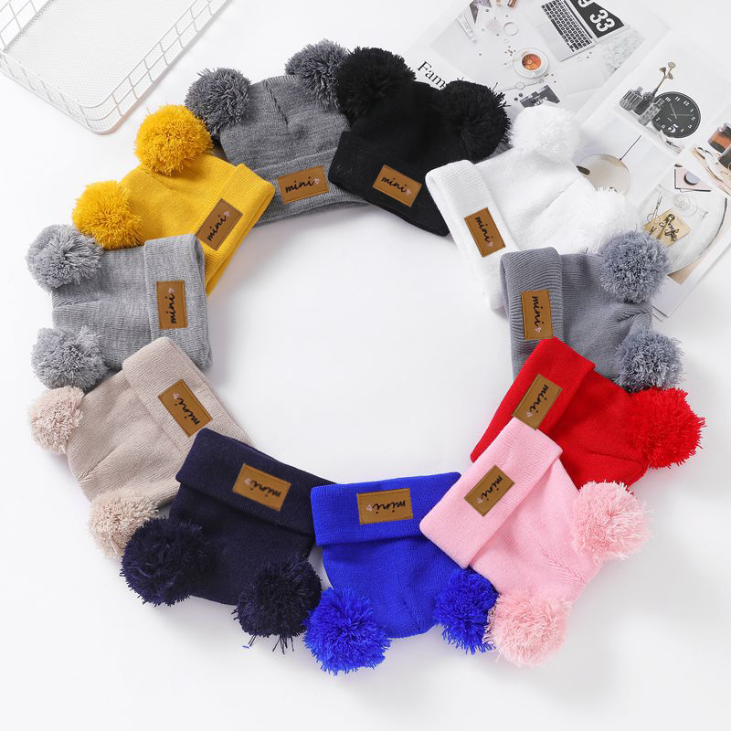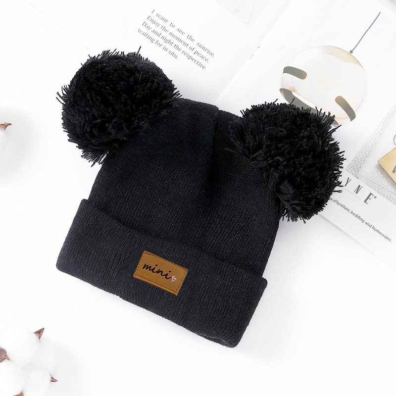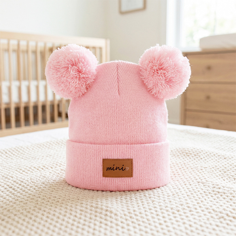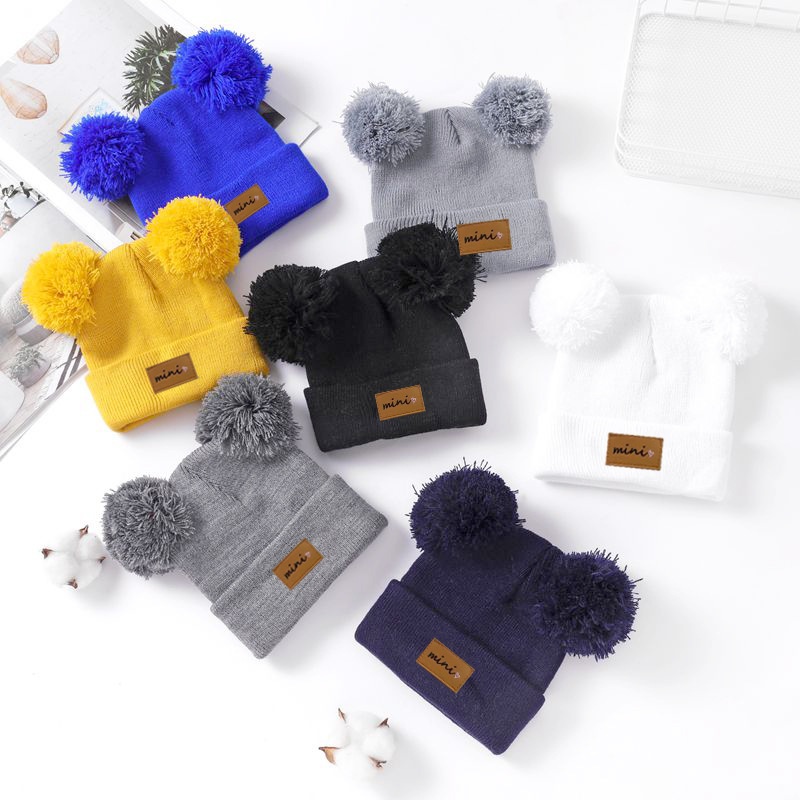 0-3세 유아용 모자, 단색 털방울 모직 모자, 유아용 풀오버 모자, 라벨 부착 아기 모자, 미니 아동 모자