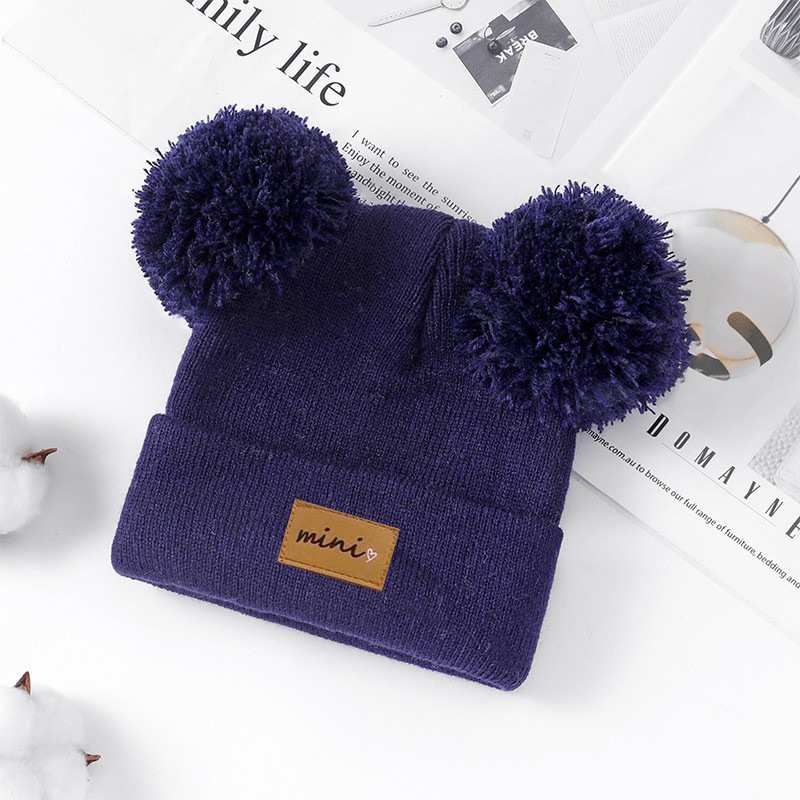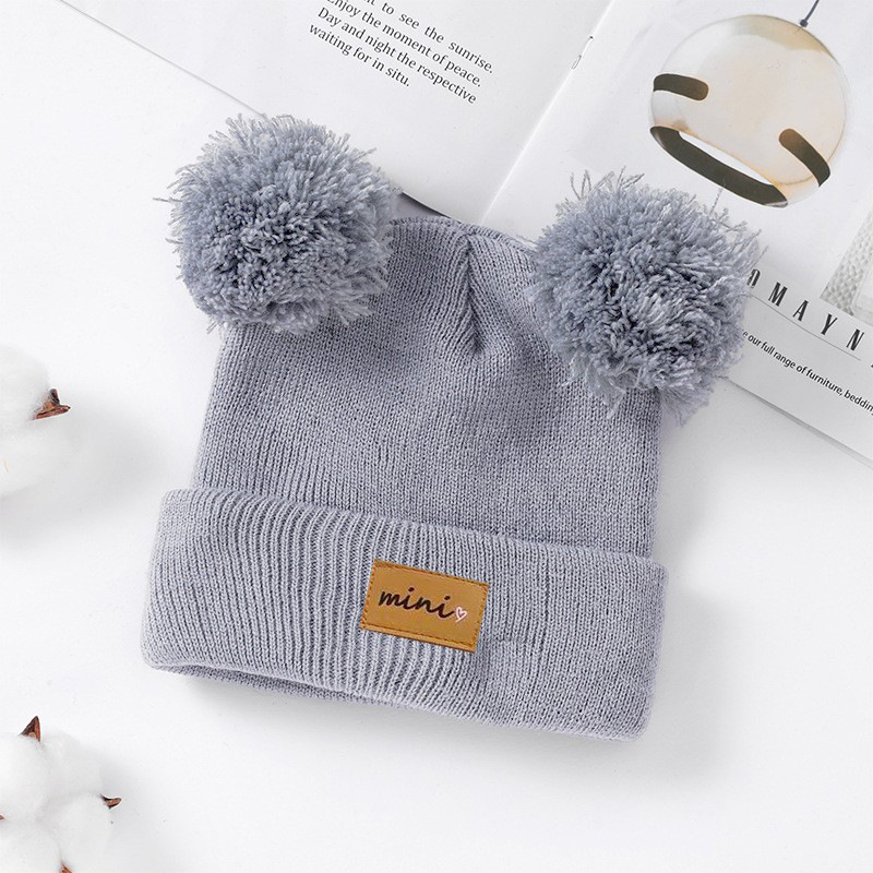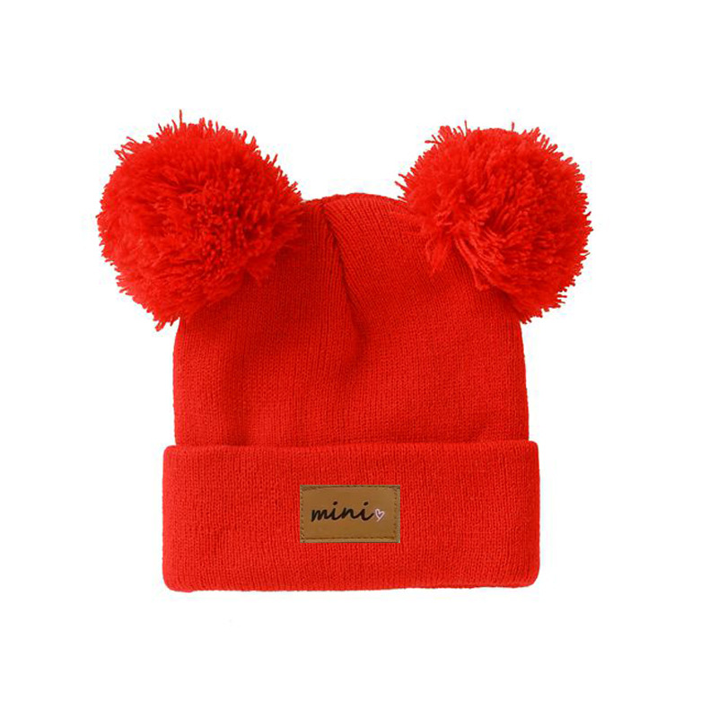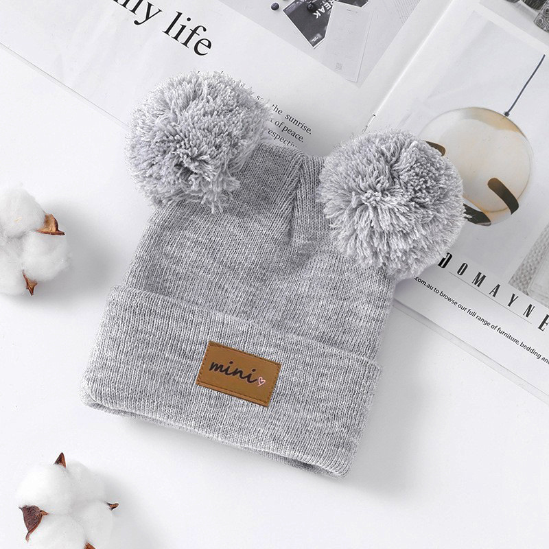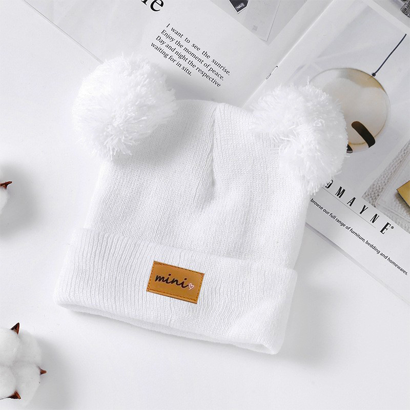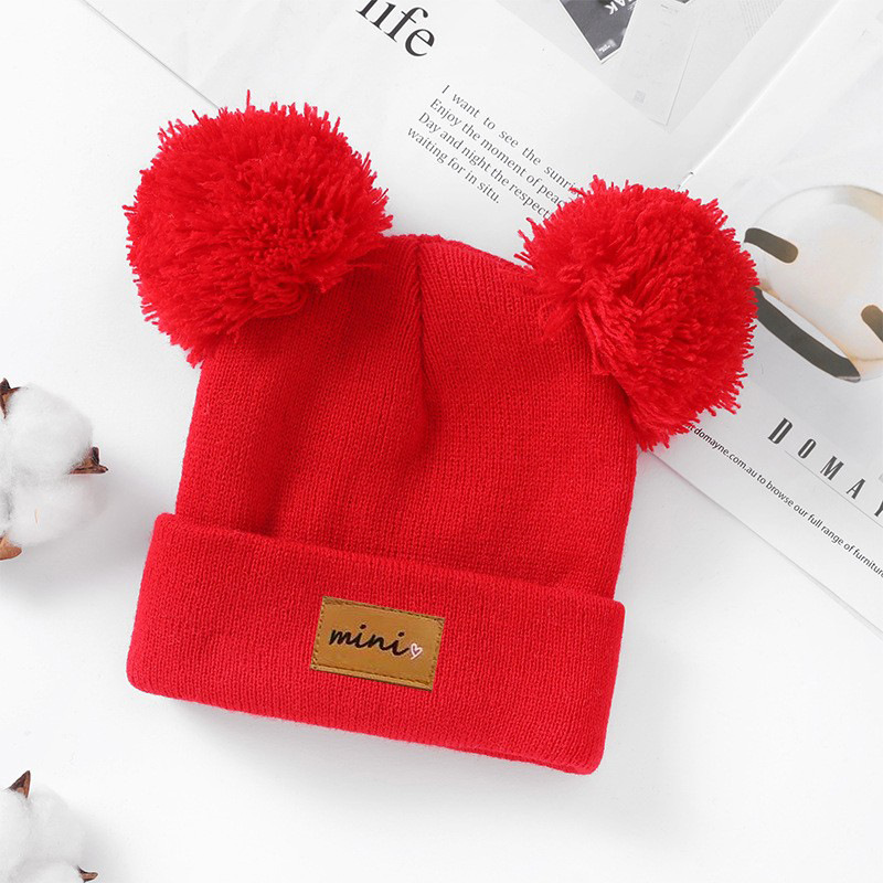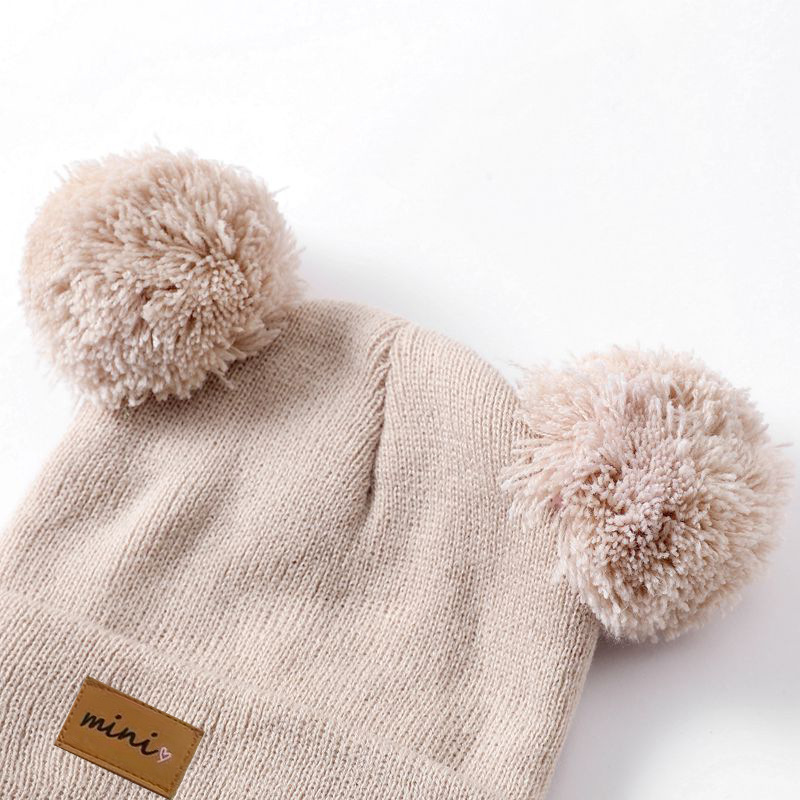 0-3세 유아용 모자, 단색 털방울 모직 모자, 유아용 풀오버 모자, 라벨 부착 아기 모자, 미니 아동 모자