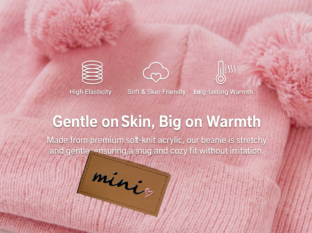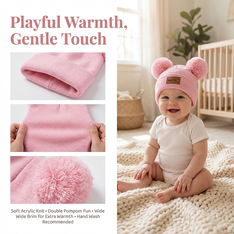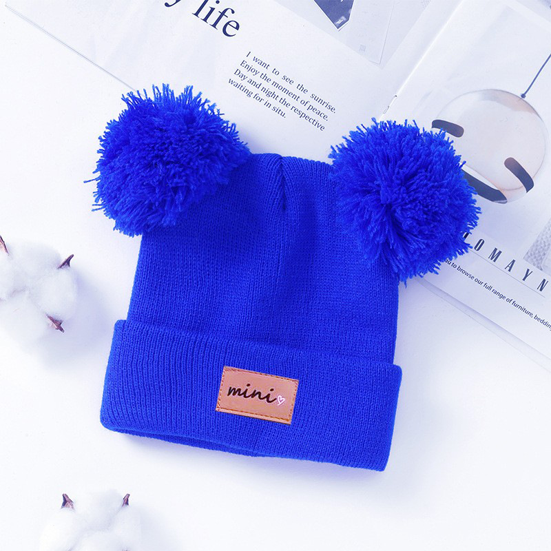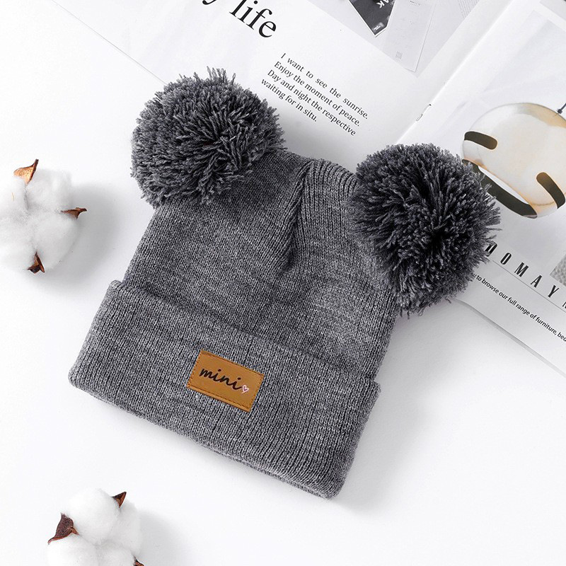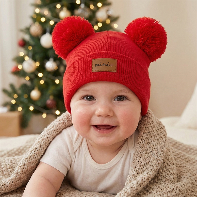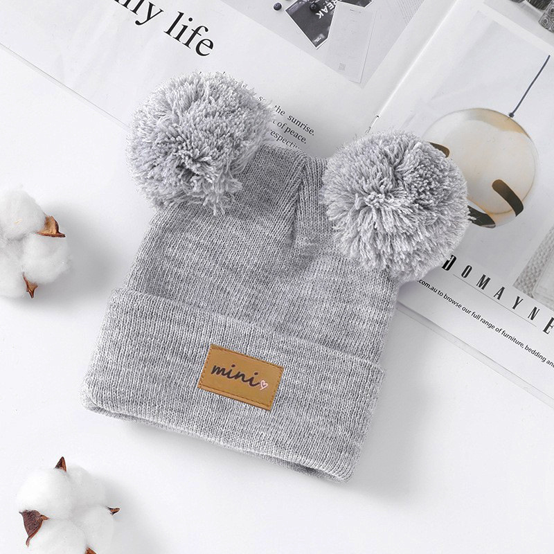 0-3세 유아용 모자, 단색 털방울 모직 모자, 유아용 풀오버 모자, 라벨 부착 아기 모자, 미니 아동 모자