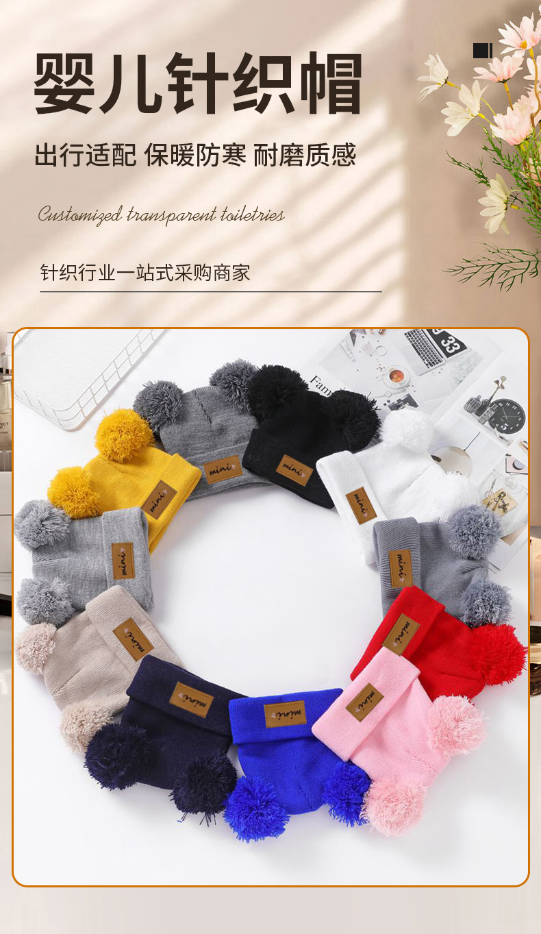 0-3세 유아용 모자, 단색 털방울 모직 모자, 유아용 풀오버 모자, 라벨 부착 아기 모자, 미니 아동 모자스토어 가기