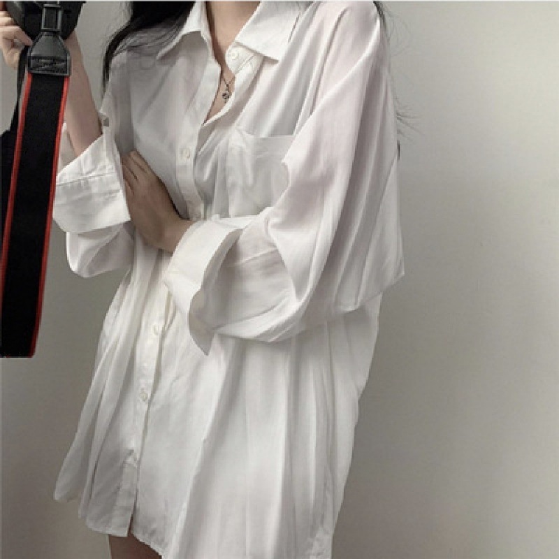 재고 2023 한풍 새로운 선 스크린 실크 슬라이드 드롭 센스 선 스크린 긴 소매 느슨한 셔츠스토어 가기