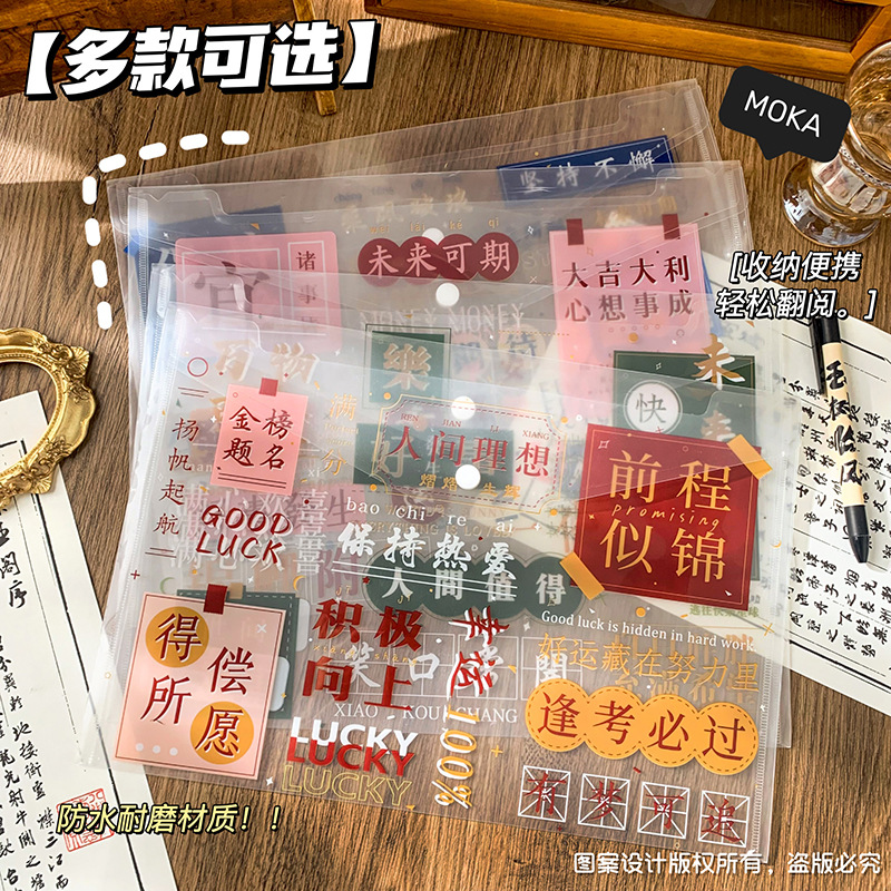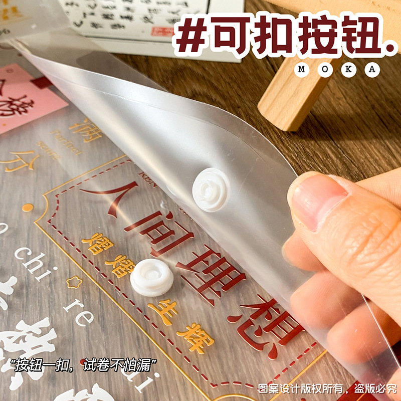 영감을주는 텍스트 pp 소재 투명 스냅 가방 a4 저장 가방 파일 저장 버튼 가방 학생 용품 파일 가방스토어 가기