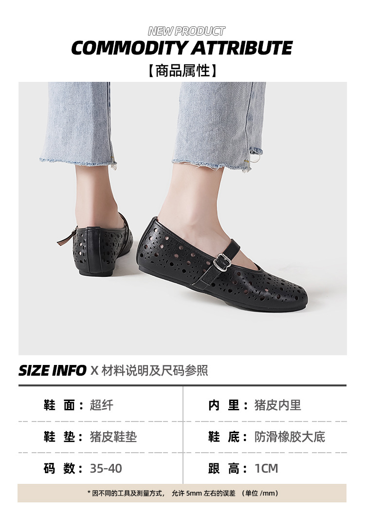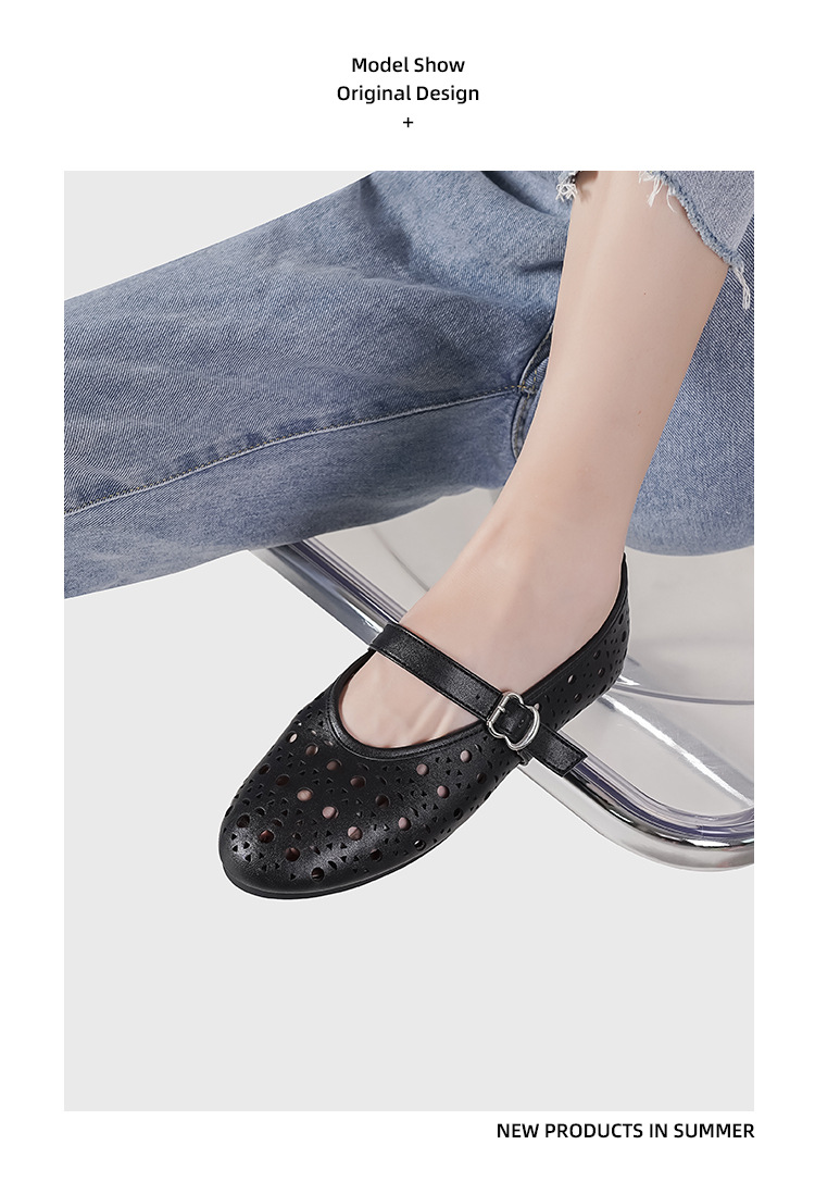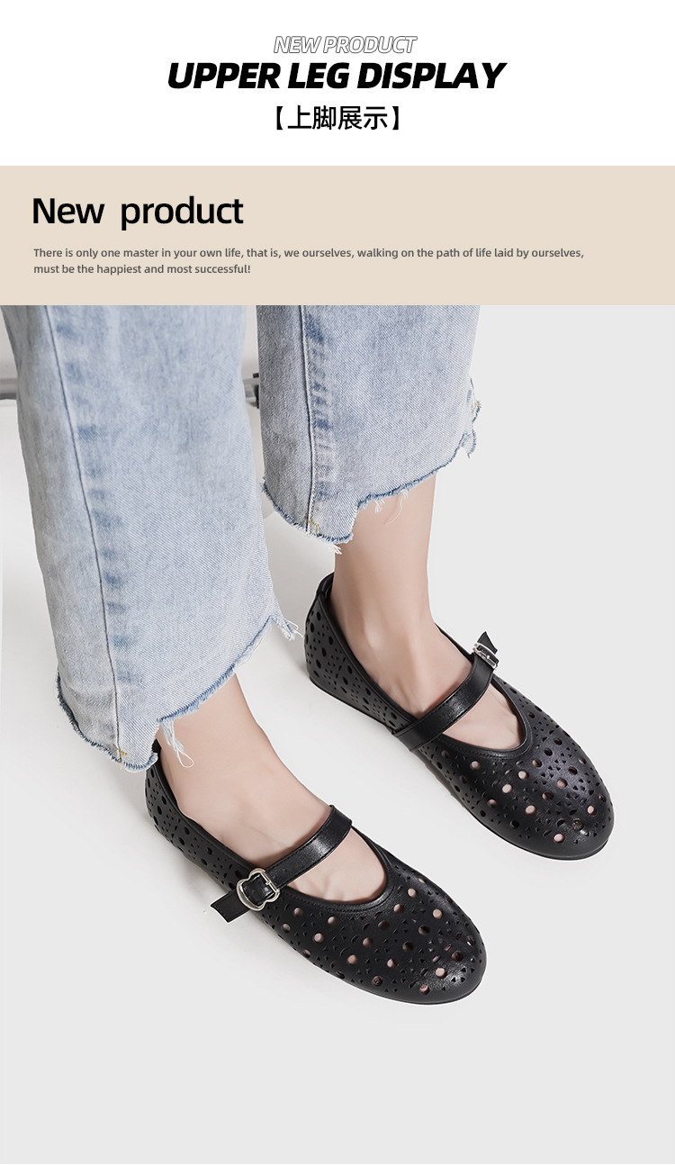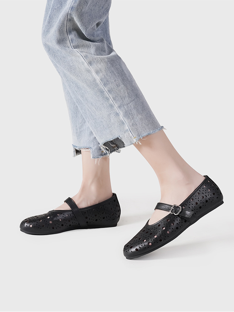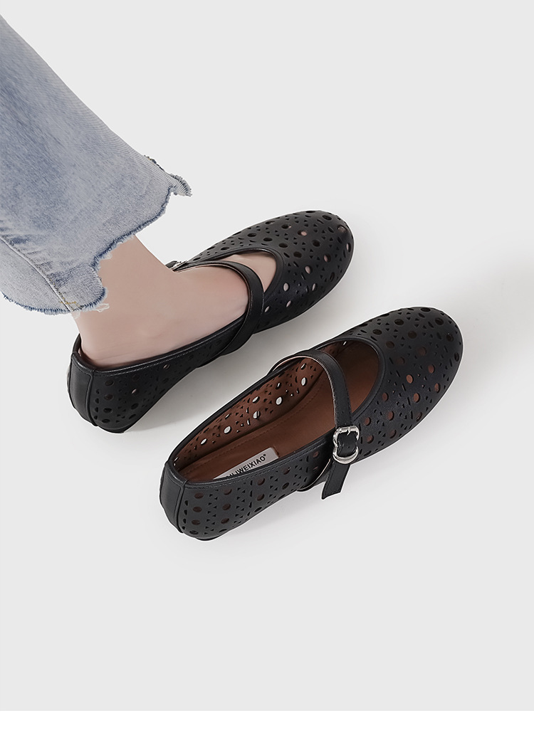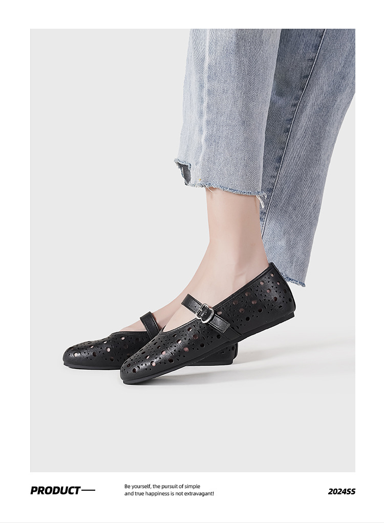 2025 새로운 프랑스어 중공 발레 신발 플랫 바닥 한 단어 버클 얕은 입 메리 제인 신발 여성 틈새 디자인 신발