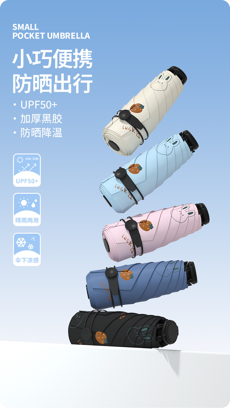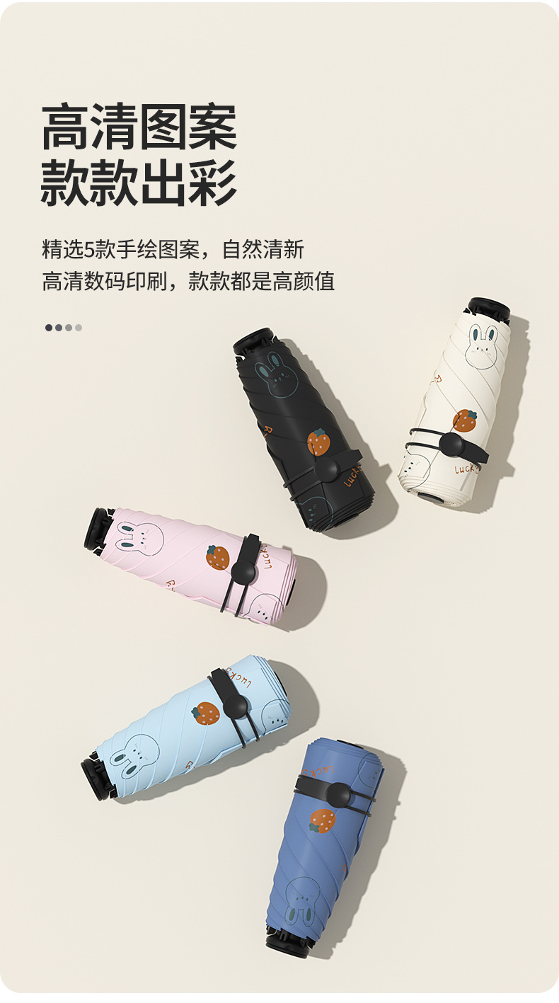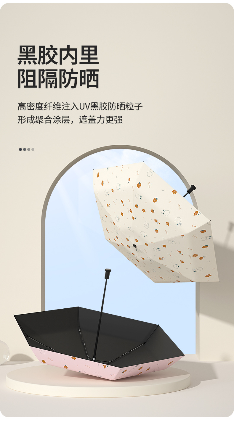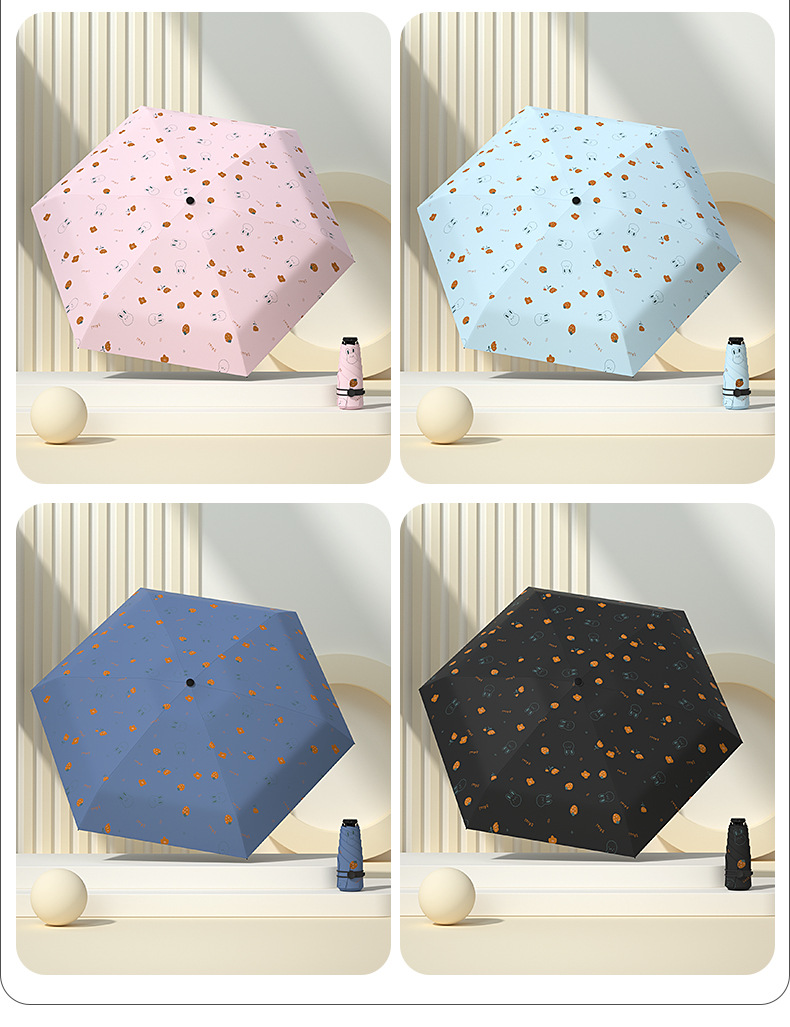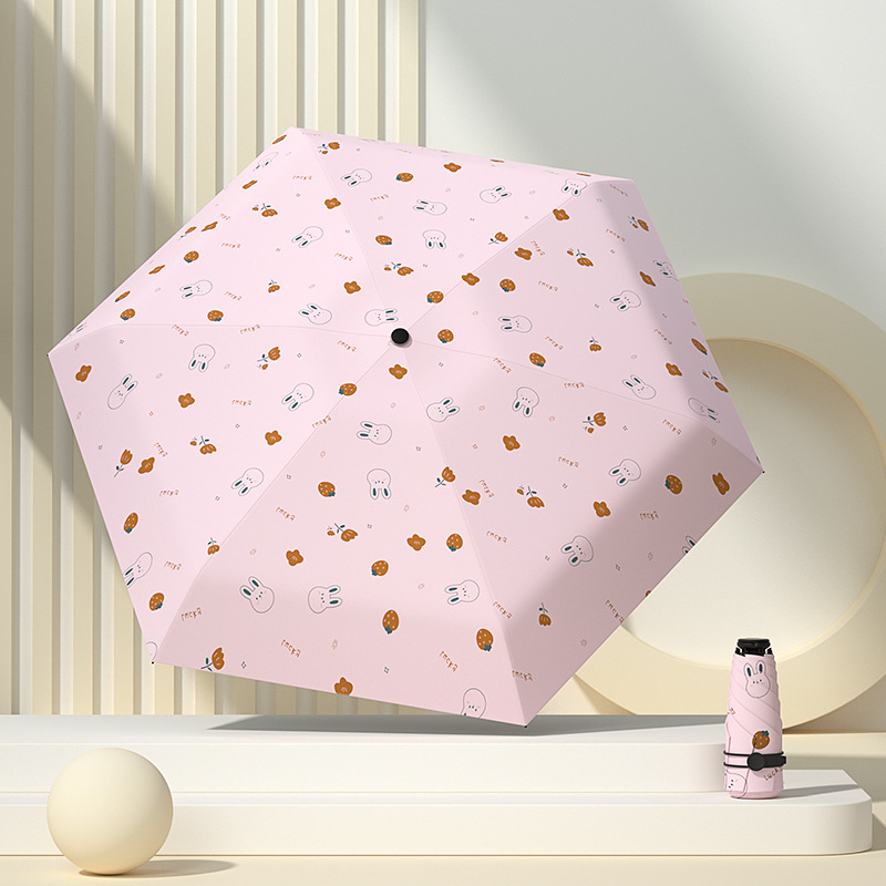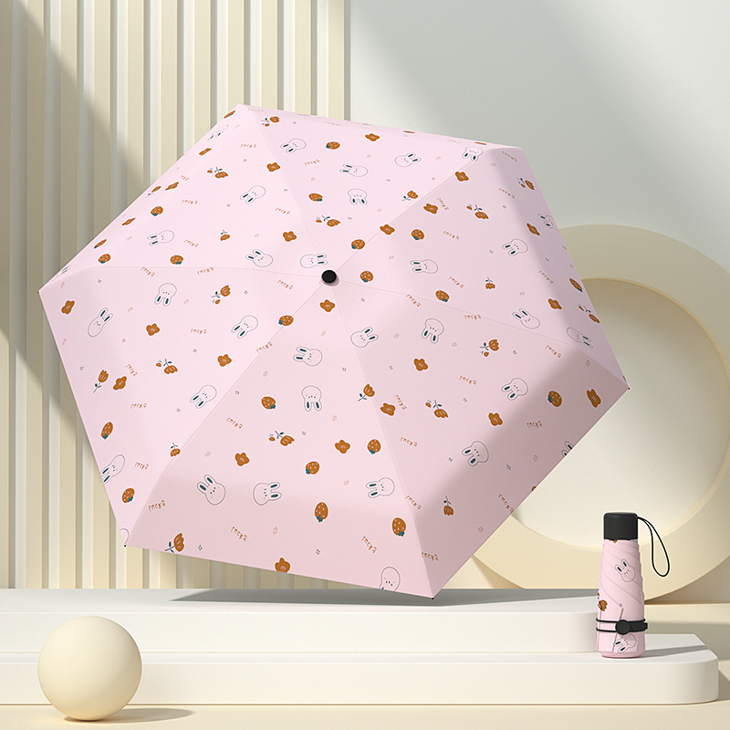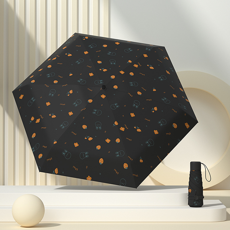 태양 우산 다섯 배 우산 여성의 검은 색 고무 선 스크린 UV 보호 울트라 라이트 폴딩 도매 인쇄 로고 우산 맑고 비오는 이중 사용스토어 가기