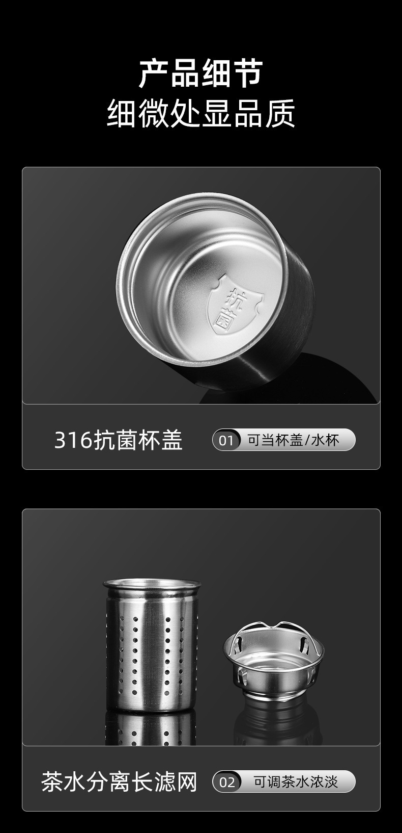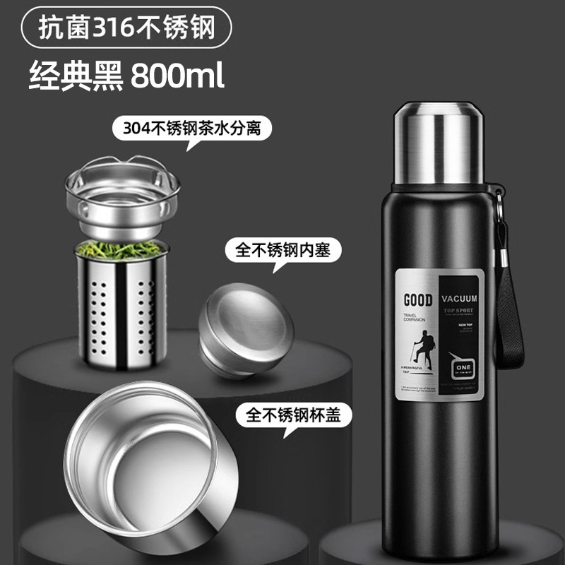316 스테인레스 스틸 보온병 야외 스포츠 여행 대용량 보온병 남성의 편리한 차 물 분리 컵