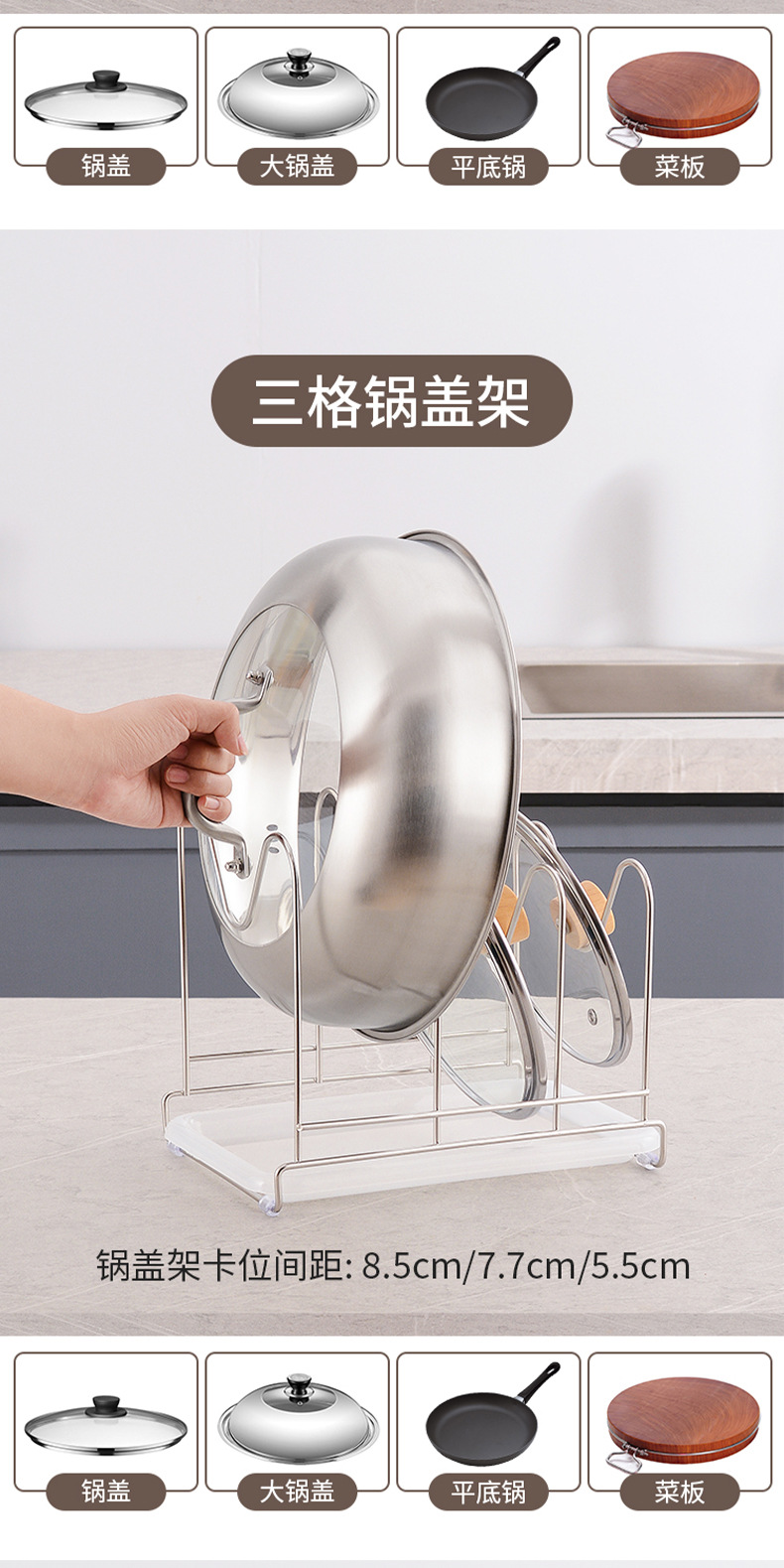 • 대형 3후크 나이프 플레이트 냄비 뚜껑 홀더(물 트레이 포함) 상자
