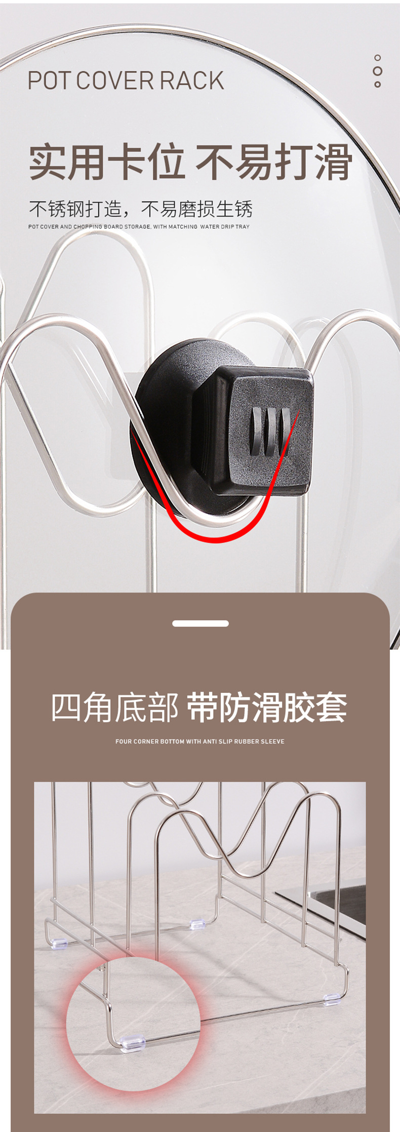 스테인레스 스틸 냄비 커버 랙 주방 보관 랙 가정용 칼 보관 랙 주방 칼 도마 통합 랙 카운터 탑 도마 랙